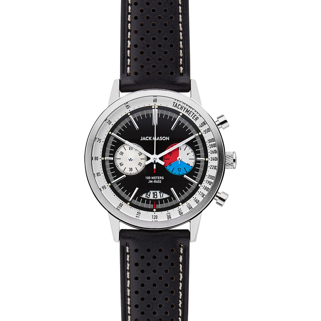 Paying homage to the intrinsically adventurous nature of the chronograph, Jack Mason's new Racing Watch Collection juxtaposes the old with the new. Complete with a perforated leather strap just like previous Racing timepieces, the 40mm Chrono boasts bold features which draw from both the interior and exterior design elements of mid-century sports cars. Every last detail was chosen to honor time and speed.