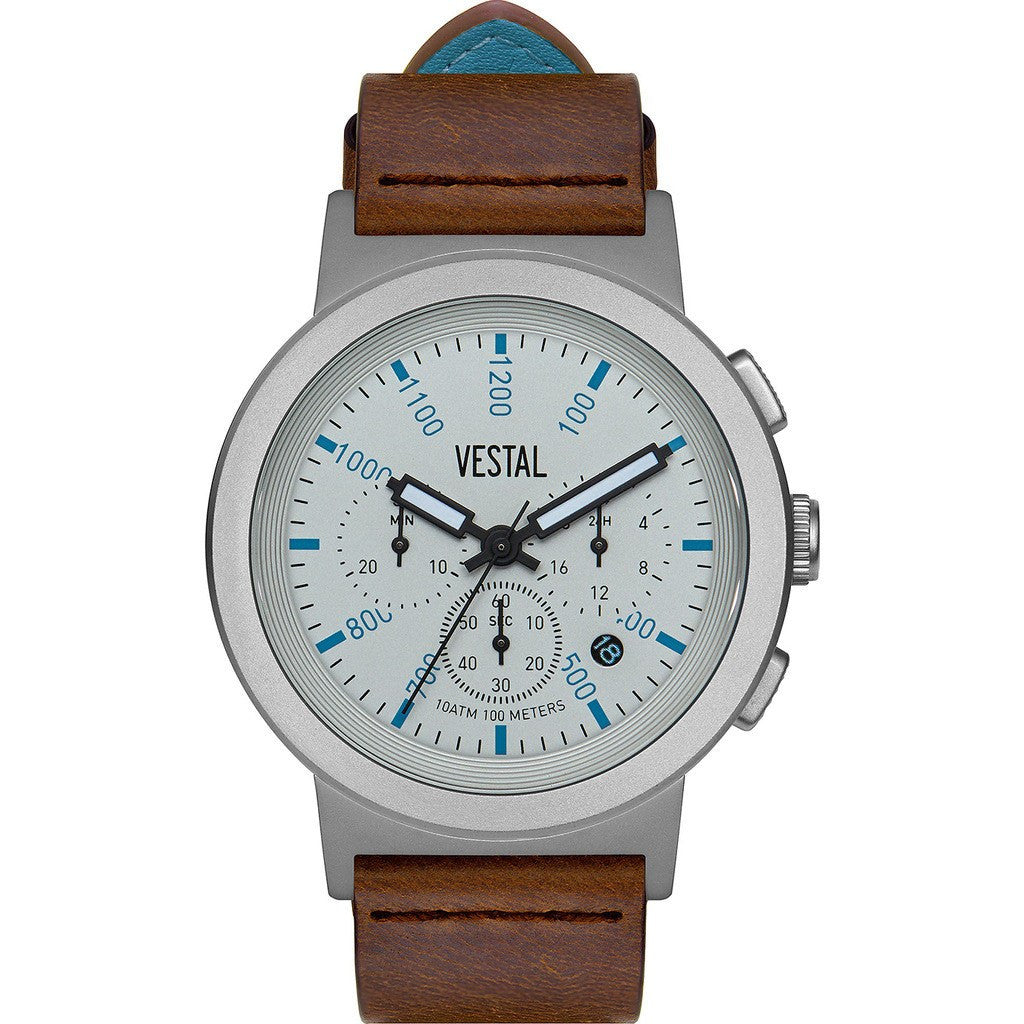 Vestal Retrofocus Chrono Watch | Brown/Silver/White/Italian Leather