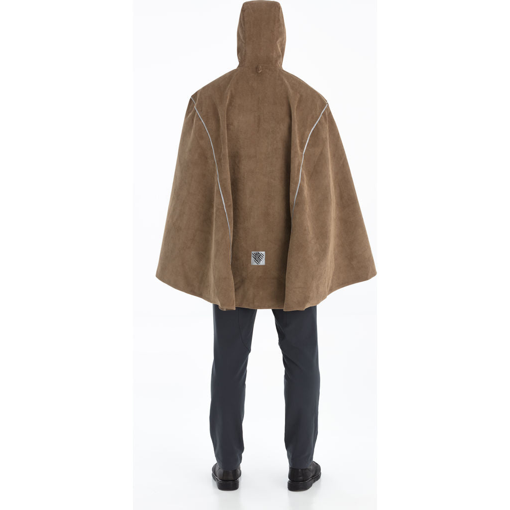 The Fantastic Mr. Fox Rain Cape from Cleverhood is a super durable, soft water-resistant curduroy poncho built to take on cold damp weather! A sophisticated look complete with rugged Uretek zippers and reflective piping, the Corduroy Rain cape features magnetic closures and elastic thumbs loops at the arm holes for a comfortable secure fit. Carefully crafted and seam-sealed with an attached hood, this rain cape's elegant brown color is a subtle nod to renown director Wes Anderson!