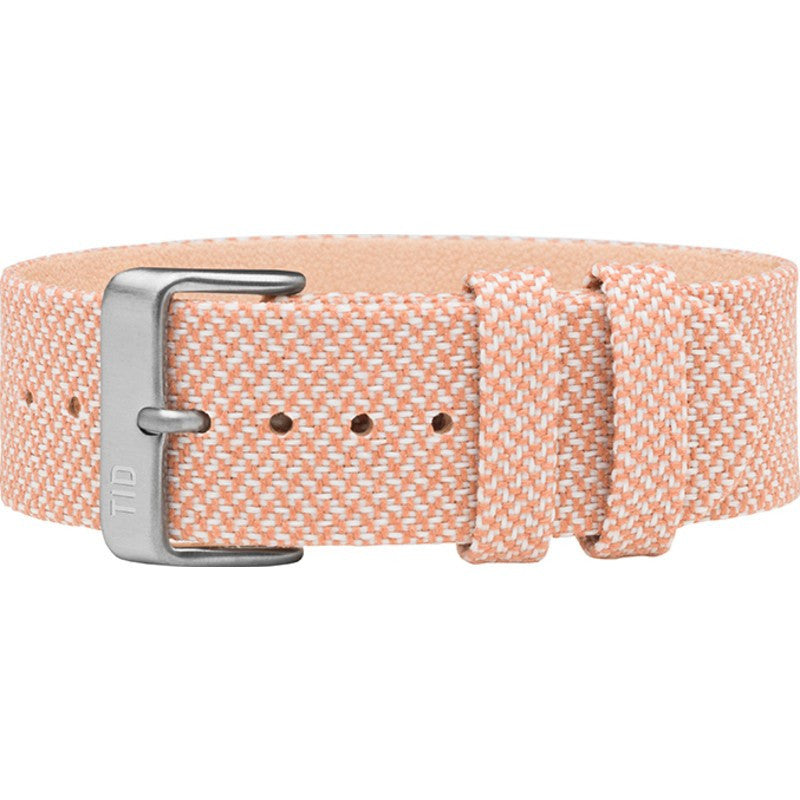 The TID Twain Salmon Wristband is eco-consciously engineered from a combination of materials to reduce the environmental impact. TID's Twain Strap is a marriage of revived textiles and vegetable tanned leather left-overs, creating a comfortable, durable, and stylish compliment to the No. 2 Watch. The exterior textile is sourced from Danish textile manufacturer Kvadrat, manufactured using post-consumer PET bottles. The interior is constructed from Swedish vegetable tanned leather, hailing from the organic tannery Tärnsjö Garveri.