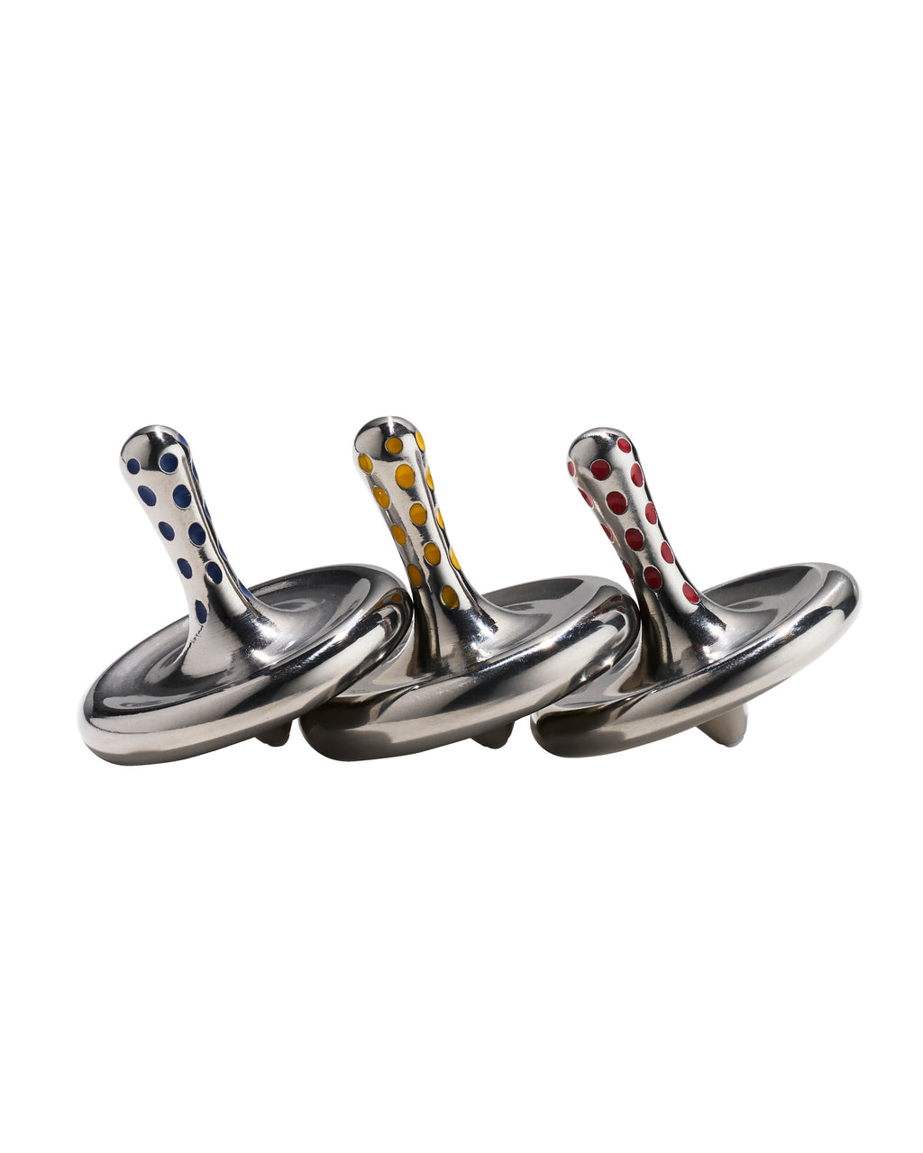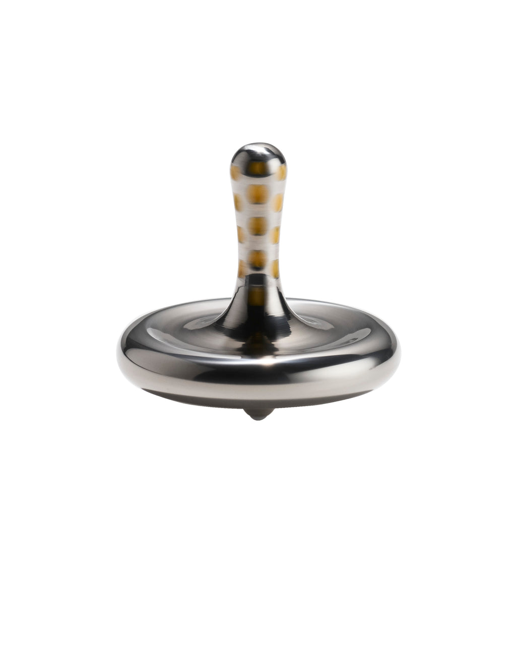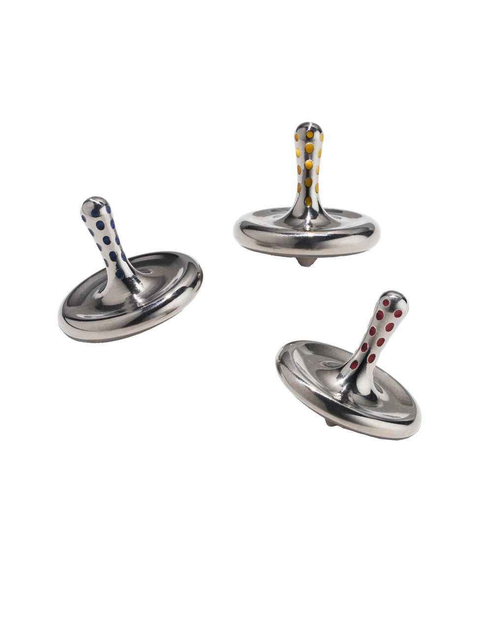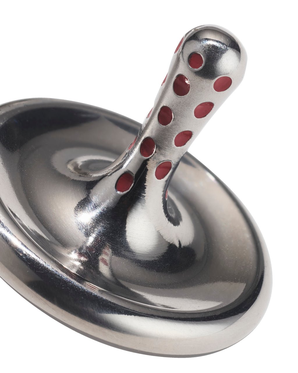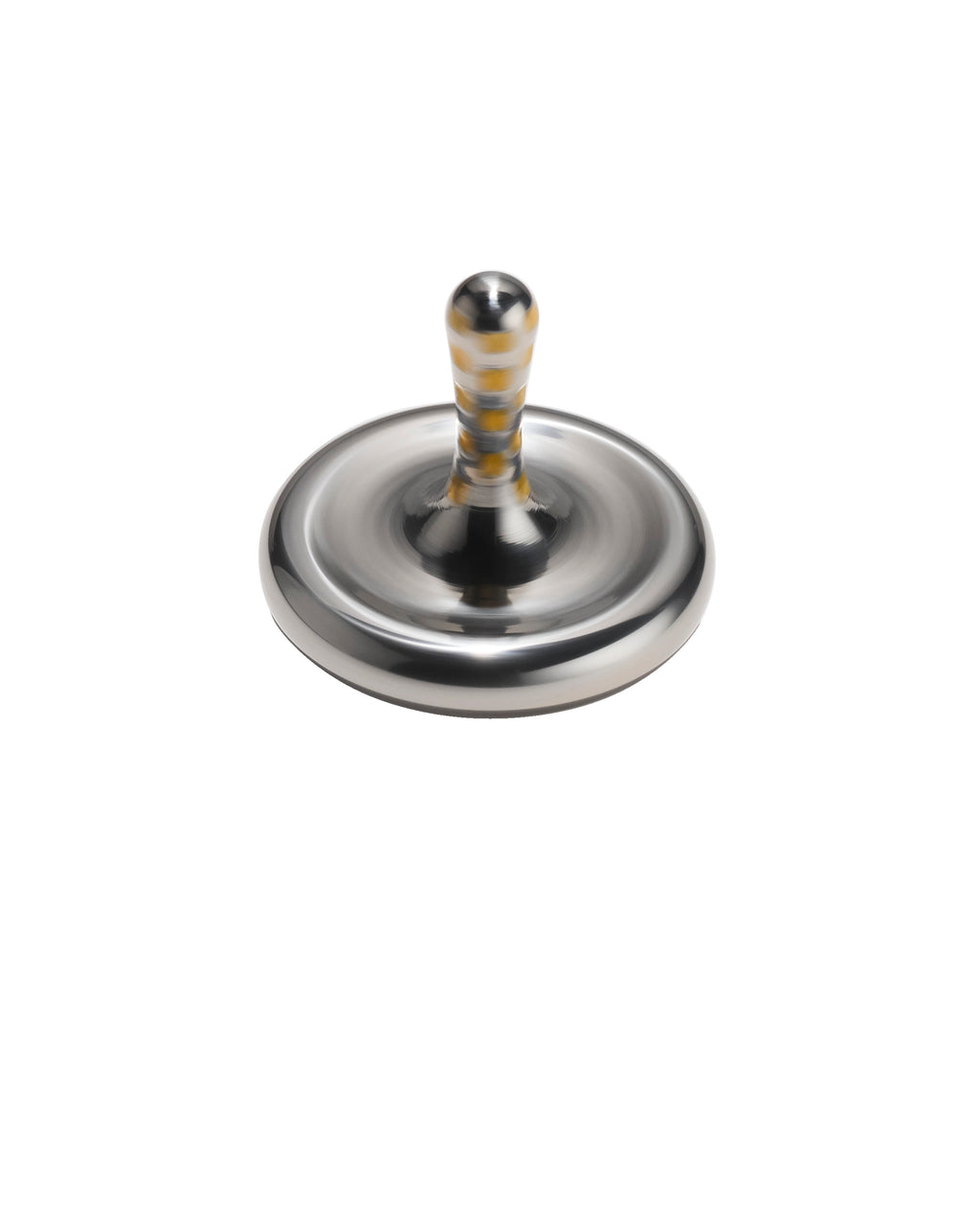 Dive into the fun with this designer piece, the top Craighill Tracer.This fascinating spinning top offers you not only hours of entertainment but also a masterpiece of design. Tracer Top is Craighill's first explicitly kinetic toy. Inspired by a single droplet colliding with a body of water, the Tracer’s design is an evocative rendering of an otherwise impermanent form. But it’s not just nice to look at — it was specifically engineered to defy the forces of friction and gravity for long, satisfying spins. Colored pips provide grip for heightened spin control in the hand, and generate a hypnotic visual effect while in motion. Available in Stainless Steel with Red, Blue, or Yellow machined pips.