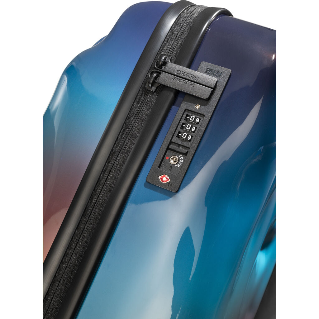 Introducing the Crash Baggage Lunar Suitcase from the limited edition Lunar collection, featuring the revolutionary Lunar wheel for a noise-free, vibration-reducing travel experience. Embrace the allure of lunar landscapes with four stunning gradient colors - Sunset, Galaxy, Infinity Black, and Silver Moon. Crafted from 100% polycarbonate, this cabin-sized suitcase combines durability with a lightweight design. The interior boasts a silver lining, complemented by various pockets and versatile compartments suitable for everything from elegant tuxedos to cherished souvenirs. With dimensions of 55 x 40 x 22 centimeters, a weight of 3.0 kilograms, and a generous 35-liter volume, this suitcase is optimized for seamless travel. Enhance your security with the TSA-approved lock, while the four 360° spinner wheels ensure effortless maneuverability. Elevate your travel style with the Crash Baggage Lunar Suitcase – where innovation meets iconic design. Choose the perfect shade to complement your journey and make a statement on every adventure.