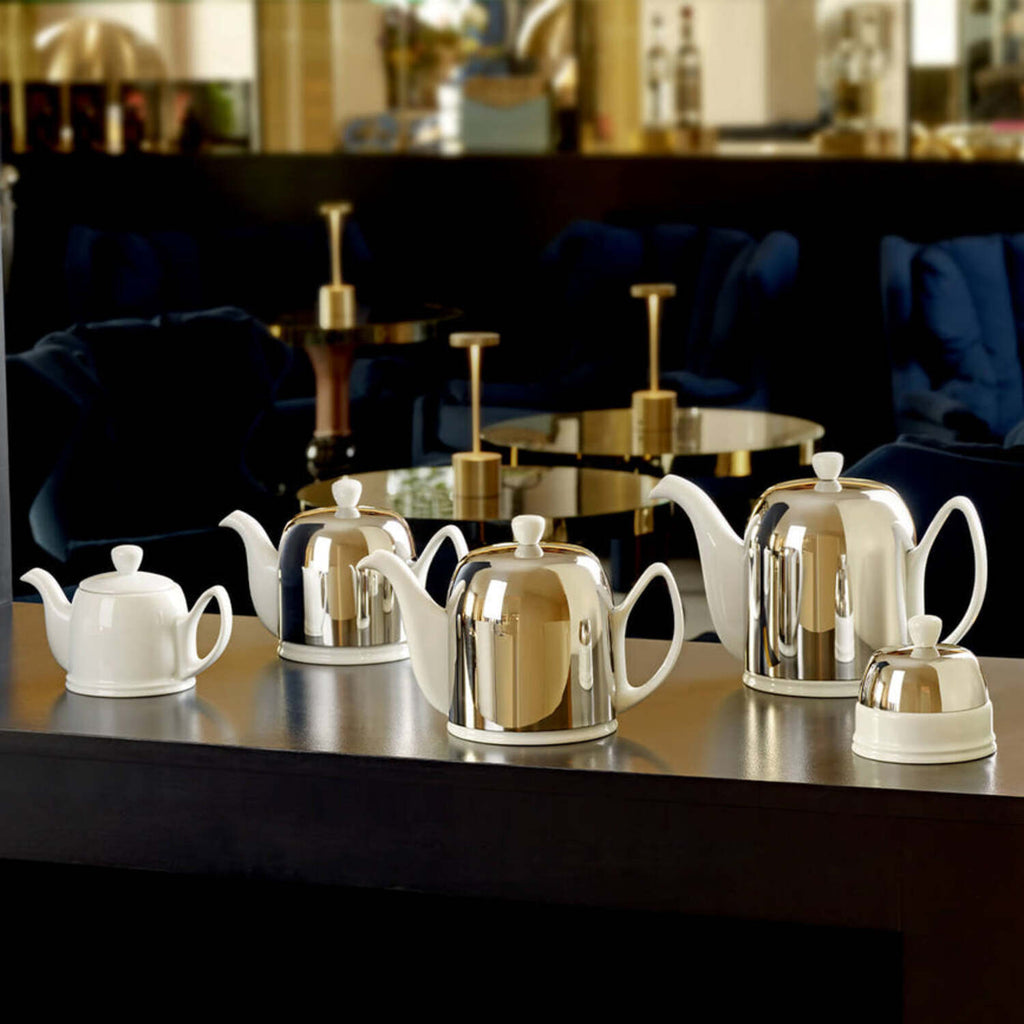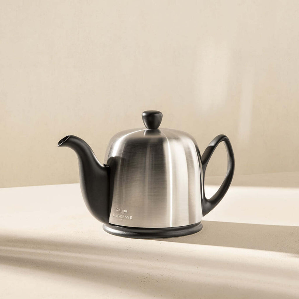 Created in 1953, the SALAM teapot is an essential product for all tea lovers. The removable infuser reveals all the subtlety of the tea and avoids bitterness due to too long infusion. The felt-lined steel bell keeps the tea at the right temperature. A true icon, SALAM graces tables with its presence. The SALAM teapot, available in 4 sizes (2, 4, 6 or 8 cups), coordinates with a line of accessories designed to make the most of the tea break. Teapots are sold without mugs or cups.