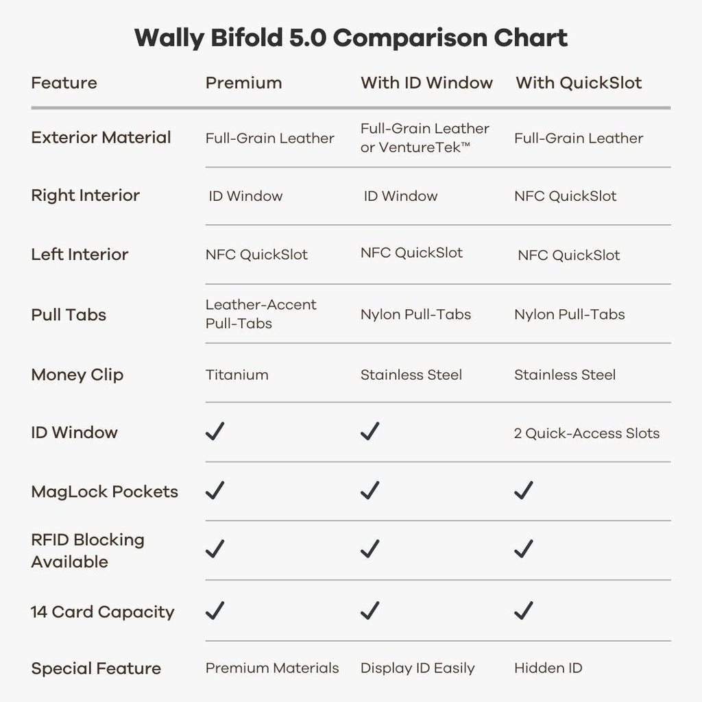 Since its Kickstarter debut in 2014, we've pioneered innovations like the signature Wally Pull-Tab™ and MagLock® snap-shut card pockets. Now in its fifth iteration, 5.0 boasts hand-rolled edges, a stainless-steel money clip unlike any wallet out there, plus ID window and RFID-shielding.