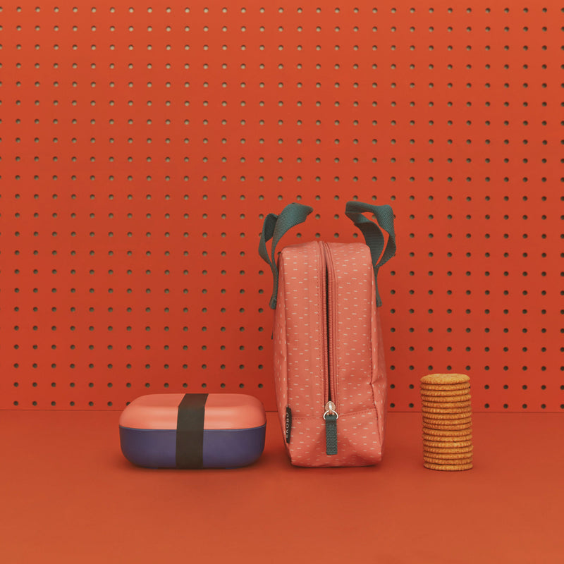 Insulated Lunch Bag: Pack your bags, lunch bags rather! Feast your eyes on our recycled PET isothermic lunch bag made from 5 water and soda bottles. They are decked out in the loveliest print by French illustrator Jennifer Bouron - 3 cool, duo-tone palettes for big or little. You can count on its premium construction to keep food hot or cold. Also features a generous opening, thoughtful pockets, and loops for cutlery. It fits most standard lunch boxes.