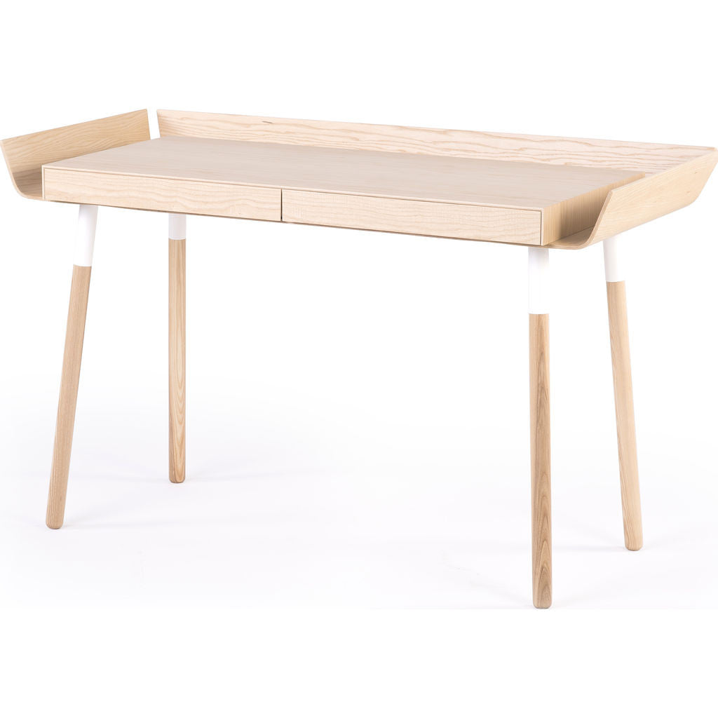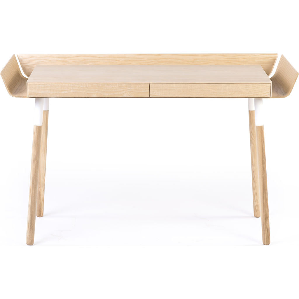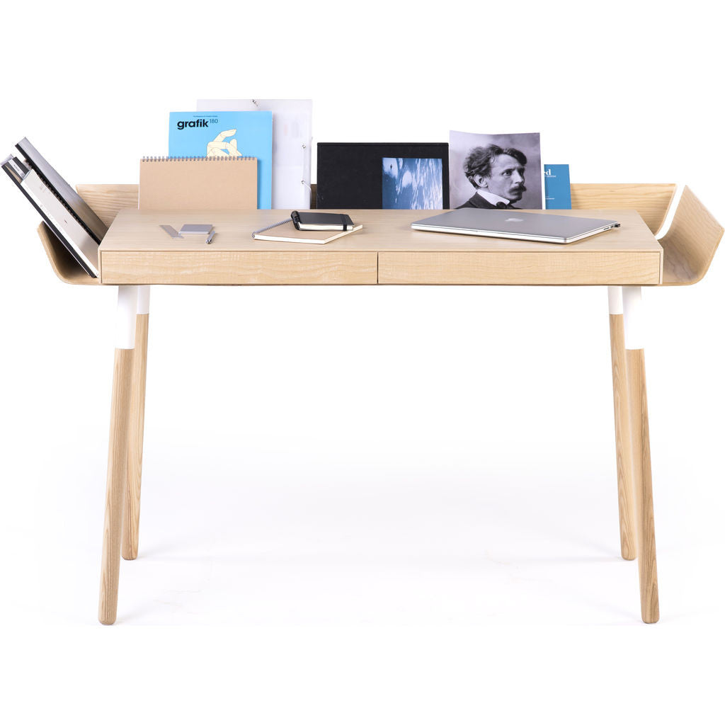 Looking for a way to reduce the cluttered mess that comes along with creative work? The EMKO My Writing Desk w/ 2 Drawers is the answer to that question. This one of a kind design has storage all around the table top, with high edges to keep stuff from falling off your desk and they kept the edges separated to make it cord friendly. Uniquely designed, you can see everything making it easily accessible. This also helps to create some separation from your workspace to the rest of the room. This ash versatile desk was designed for creative people who know the value of efficient work.