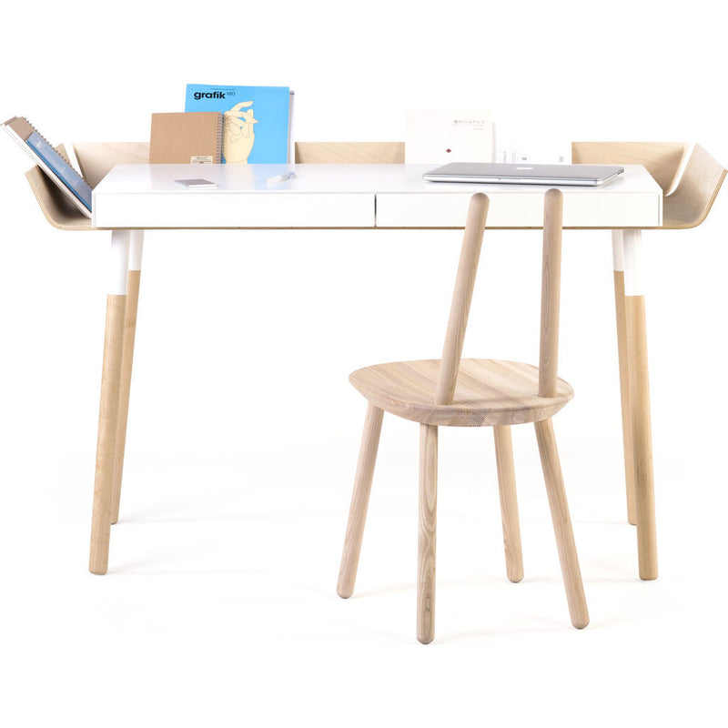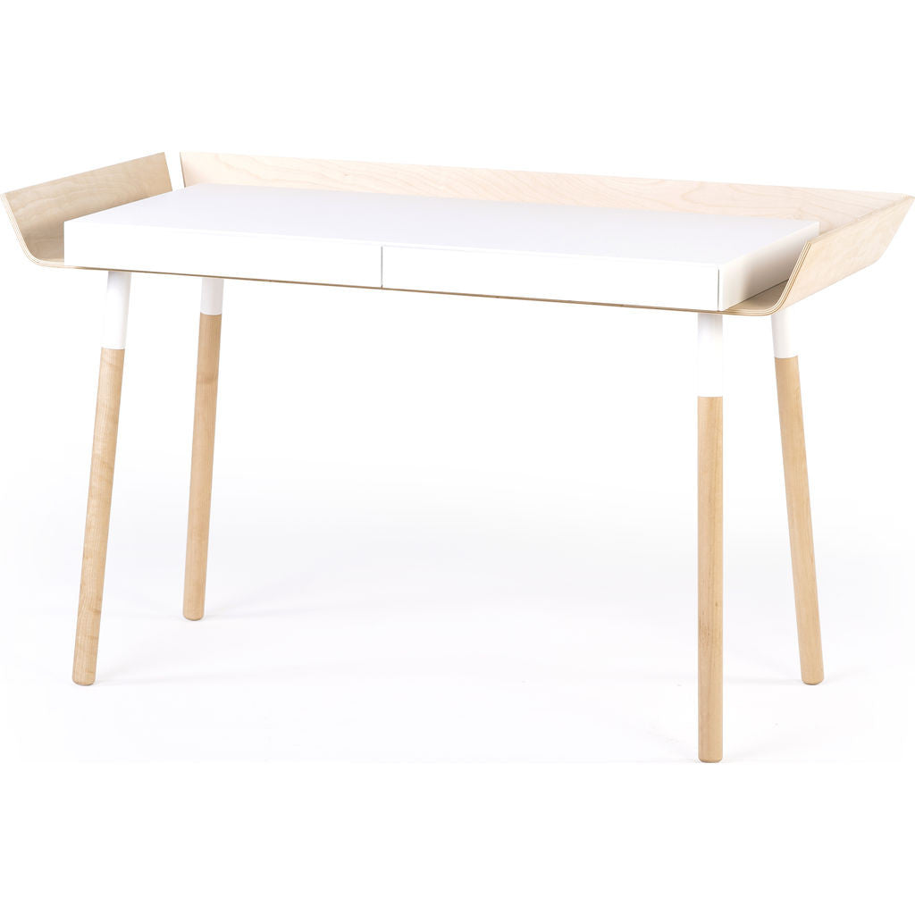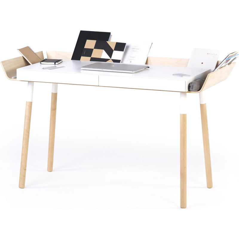 Searching for a ways to reduce the cluttered mess that comes along with creative work? The White/Birch EMKO My Writing Desk w/ 2 Drawers is the answer to that question. This one of a kind design has storage all around the table top, with high edges to keep stuff from falling off your desk and they kept the edges separated to make it cord friendly. Uniquely designed, you can see everything making it easily accessible. This also helps to create some separation from your workspace to the rest of the room. This versatile desk was designed for creative people who know the value of efficient work.