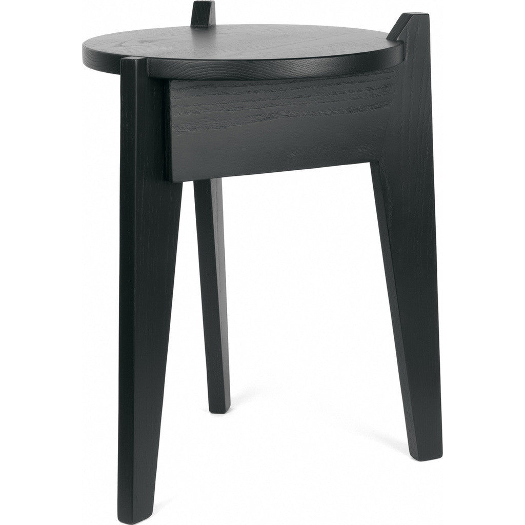 Traditional design elements are paired with contemporary styling to bring you the Black Green Milk Stool by Esaila. This unique piece was inspired by a little old stool, most likely used as a milk stool, that was found in the depots of a Dutch museum. The designers were so infatuated by this stool that they decided to recreate it in a modern, reworked, and usable version. With its informal character and understated appearance, the Milk Stool can be used as a place to sit, a nightstand, or even a side table.