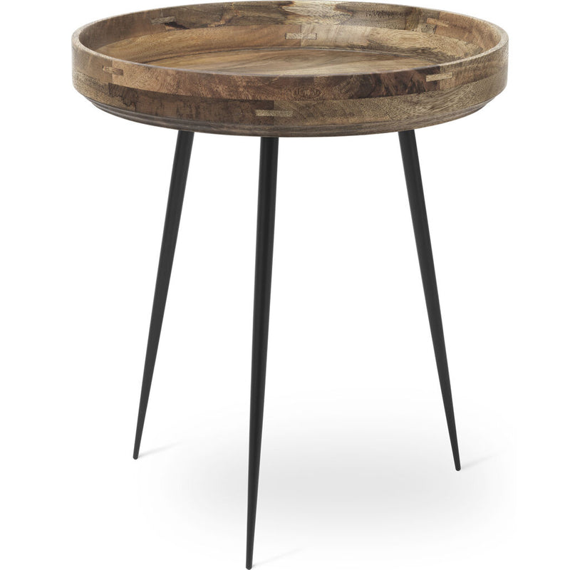 The Mater Bowl Table reconciles old Indian craftsmanship with the simplicity of Scandinavian design. The table top, made of sustainably sourced mango wood is turned on a lathe, showcasing the skill of Kharadi, an Indian wood turning community and supporting their local craftsmanship. The Bowl Table can stand alone or be paired as a side table vignette. The finish used on the table top is a lead-free, water-based PU lacquer. The legs are made of milled hollow steel rods and can be detached for ease of labour and transportation.
