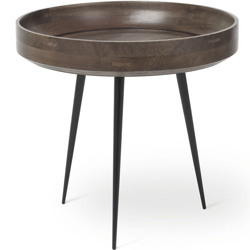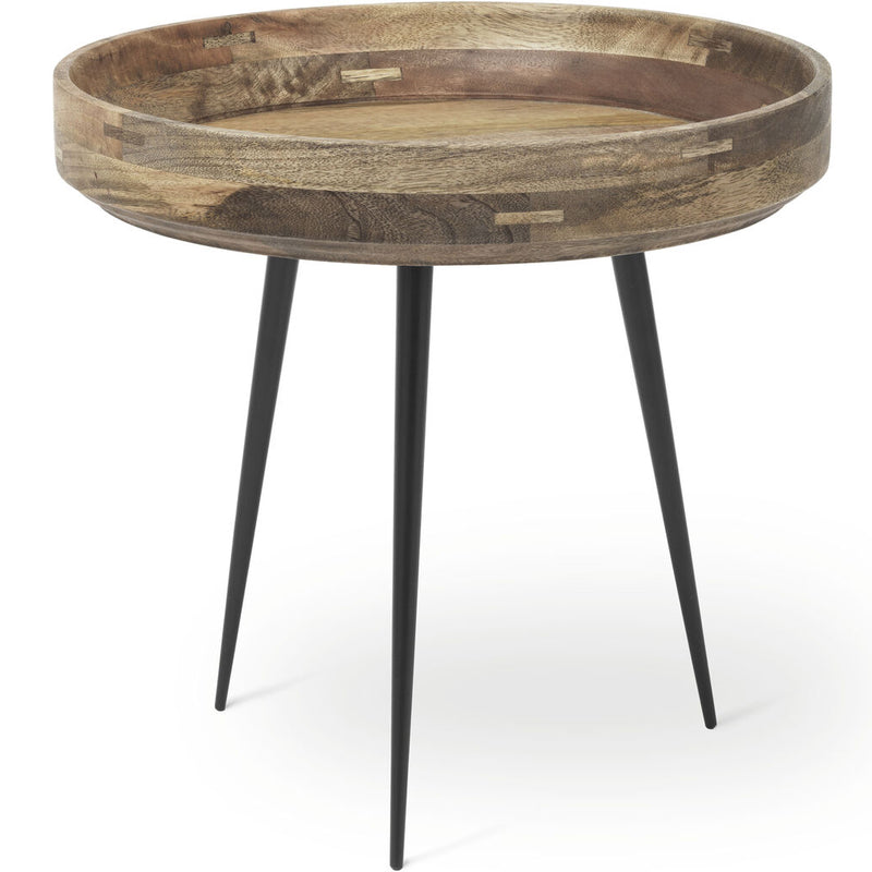The Mater Bowl Table reconciles old Indian craftsmanship with the simplicity of Scandinavian design. The table top, made of sustainably sourced mango wood is turned on a lathe, showcasing the skill of Kharadi, an Indian wood turning community and supporting their local craftsmanship. The Bowl Table can stand alone or be paired as a side table vignette. The finish used on the table top is a lead-free, water-based PU lacquer. The legs are made of milled hollow steel rods and can be detached for ease of labour and transportation.