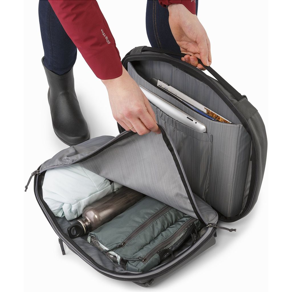 The Arc’teryx Blade 20 Backpack in Katalox is the perfect companion for any adventure, whether local or international. With 20 liters of storage, this pack features a padded laptop compartment, an internal organizer pocket system, a discreet back panel pocket, a stretch mesh pocket for small electronics, a dump pocket for cables or power cords, a zippered security pocket, and two outer pockets. This pack is made for those who love to stay organized on the go, and also has a stash pocket with a cable pass to charge devices without removing them from the pack. The thermoformed padded back panel, dual density cushioning shoulder straps, and the streamlined profile ensure ultimate comfort. Stay comfortable, stylish, and organized no matter where you go with the Blade 20 Backpack in Black.