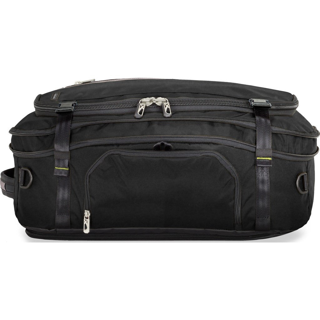 This expandable and versatile Exchange Medium Duffel Bag in black is the perfect urban adventure companion. This carry-on sized duffel has a multitude of interior and exterior pockets and compartments to store and organize all your essentials. Carry it as a duffle or pull out the backpack straps when you need to go hands-free.