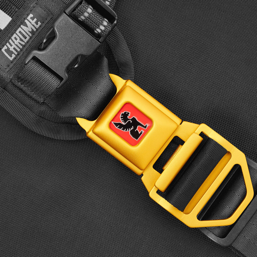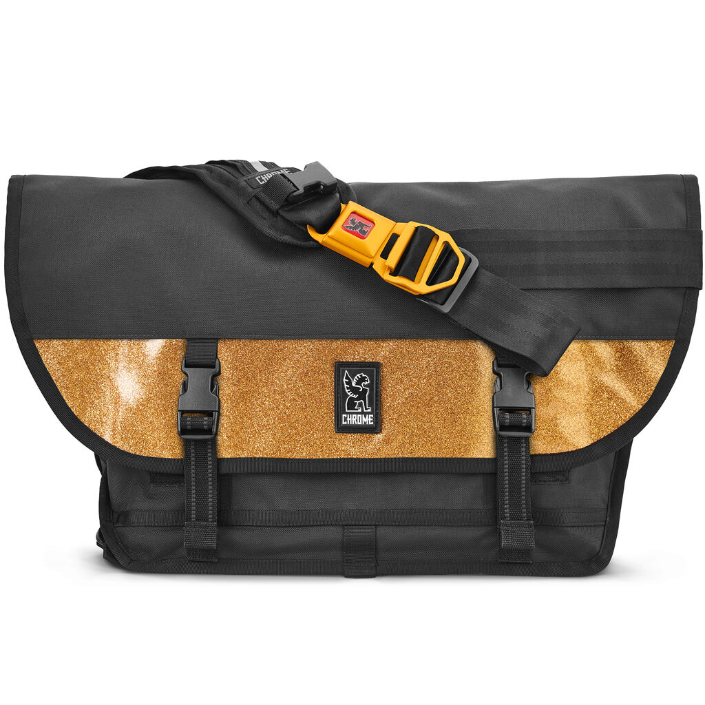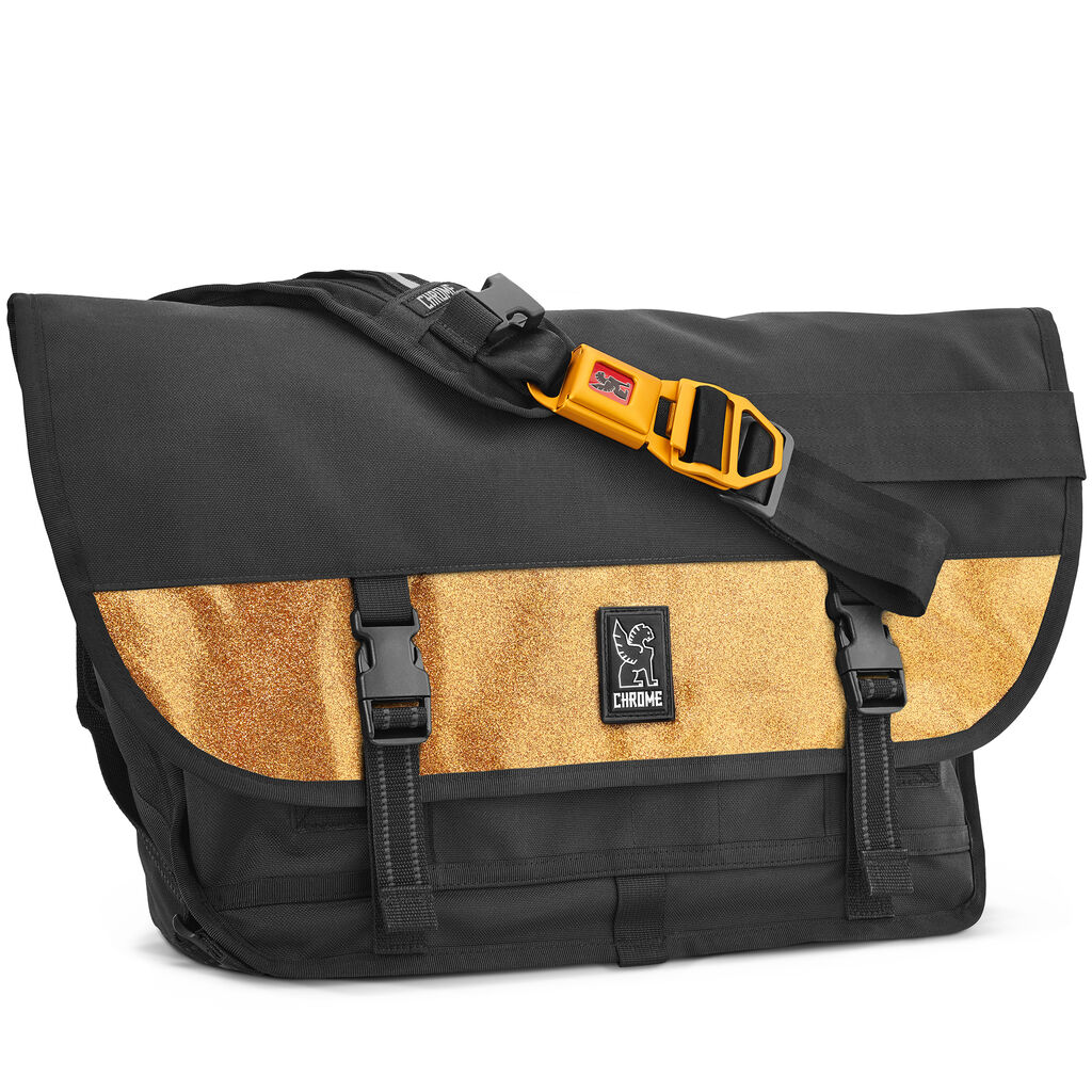 Chrome Citizen Medal Messenger Bag from Chrome is designed to keep your stuff stored away and protected from the elements. A weather-resistant and military-grade 1050D nylon material provides a lightweight yet tough construction that's topped off with an 18 oz truck-tarpaulin liner. It also features a five-bar seat belt webbing with bonded nylon 69 threads. This cross-body sling messenger bag can be secured across your chest, which makes it easy to be on the move. Additionally, the bag features a quick-release buckle with an integrated bottle opener and a series of mounting points for accessories. This Citizen Medal Messenger Bag is made with plenty of interior organization, including space for a 17" laptop, as well as enough room to fit extra gear, thanks to its 26L volume capacity. Zippered closures ensure your items remain secure and stored away. Furthermore, the Citizen Medal Messenger has reflective straps for night visibility, so you can go on that nighttime hike whenever you want.