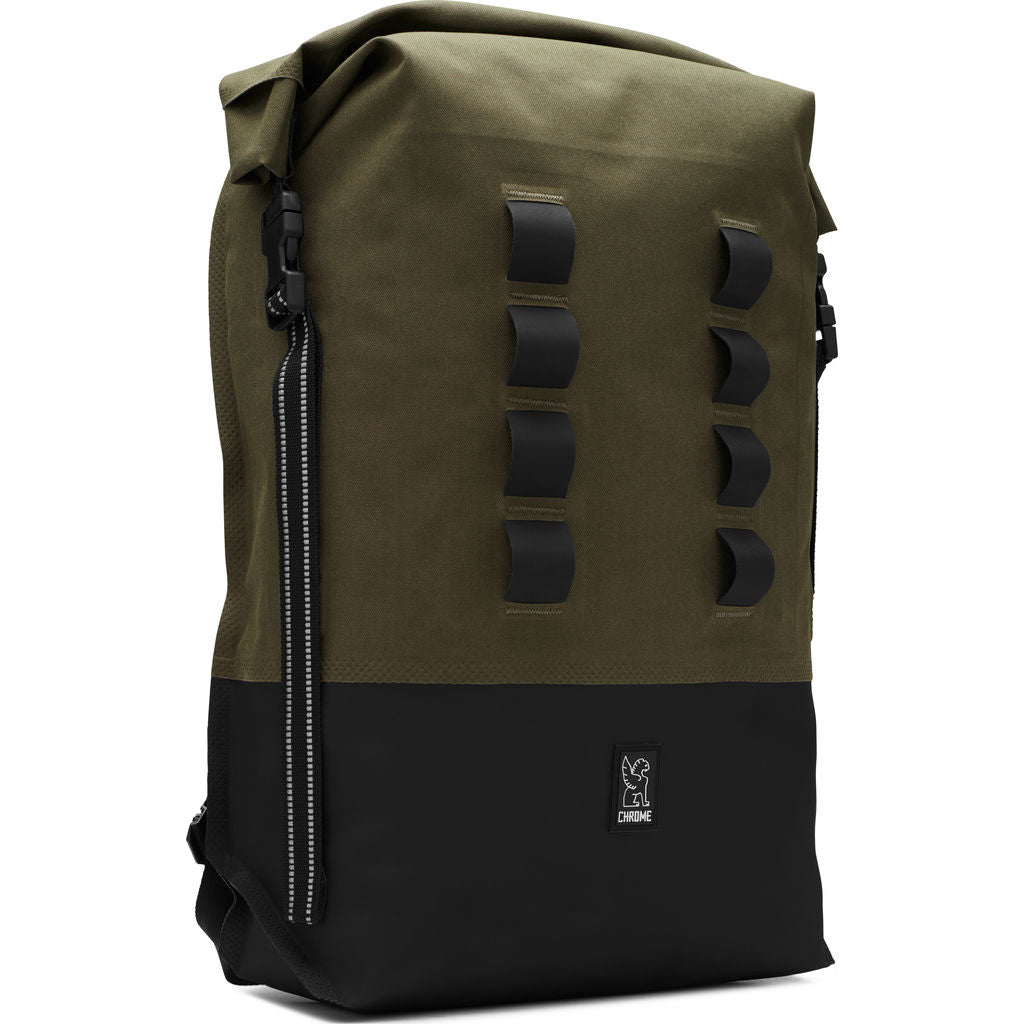 Chrome's Ranger Urban Ex Rolltop 28L is a compact 28-liter welded-waterproof daypack. It has an integrated laptop sleeve, ideal for urban adventures, self-supported commuter biking, and all-weather commuting. Chrome designed the dark green Urban Ex Rolltop to be carried as a backpack or as a tote with the 5-bar webbing handles. Perfect for a day in the woods or winter storms, this pack is 100% waterproof and light enough to go unnoticed.