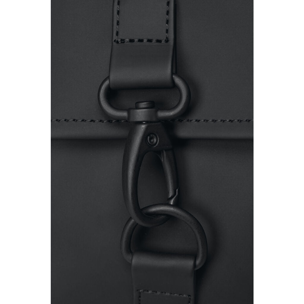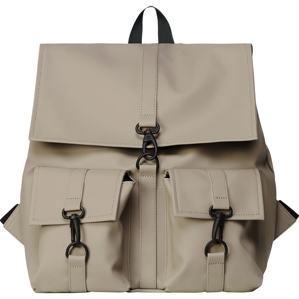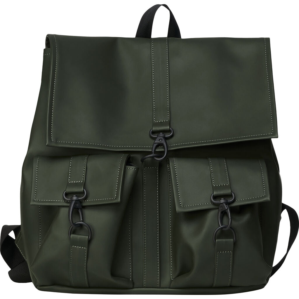MSN Cargo is a modified version of RAINS signature backpack, MSN Bag. This medium version of the classic features two front cargo pockets with RAINS’ maritime carabiner closures. Inspired by the traditional school backpack, the MSN silhouette is created from waterproof fabric and fully lined on the inside. MSN Cargo has a main compartment sealed with side snap-buttons and a top flap secured by carabiner closures. MSN Cargo is finished with adjustable webbing shoulder straps.