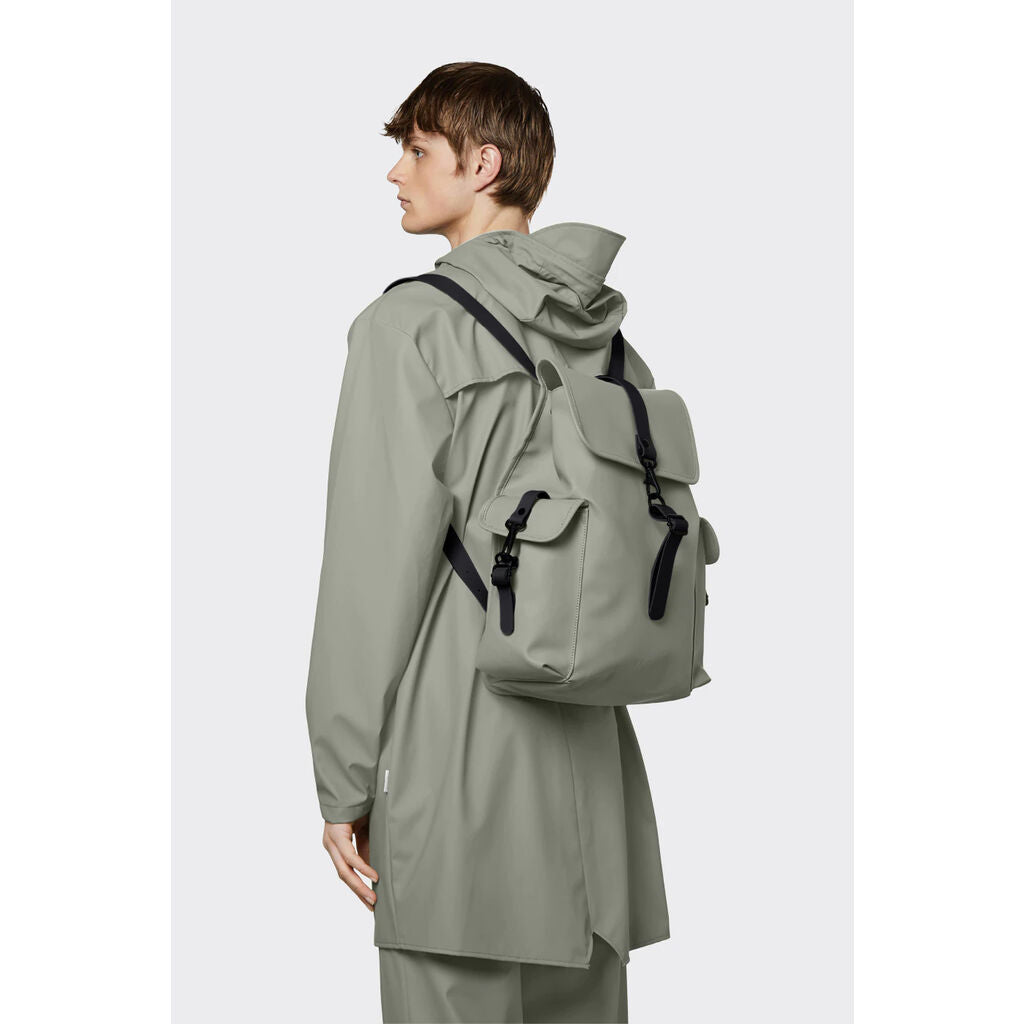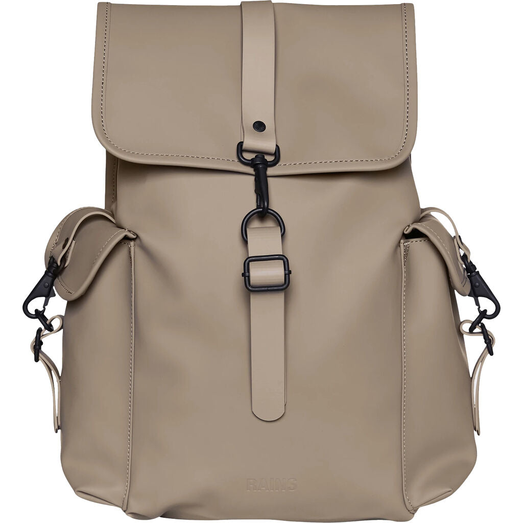 Rucksack Large is a more spacious version of the original Rains Rucksack design. Rucksack Large features Rains’ signature front flap with carabiner buckle closure and adjustable TPU backstraps. The rectangular body has two symmetrical side cargo pockets with signature carabiner buckle closures to match the front.