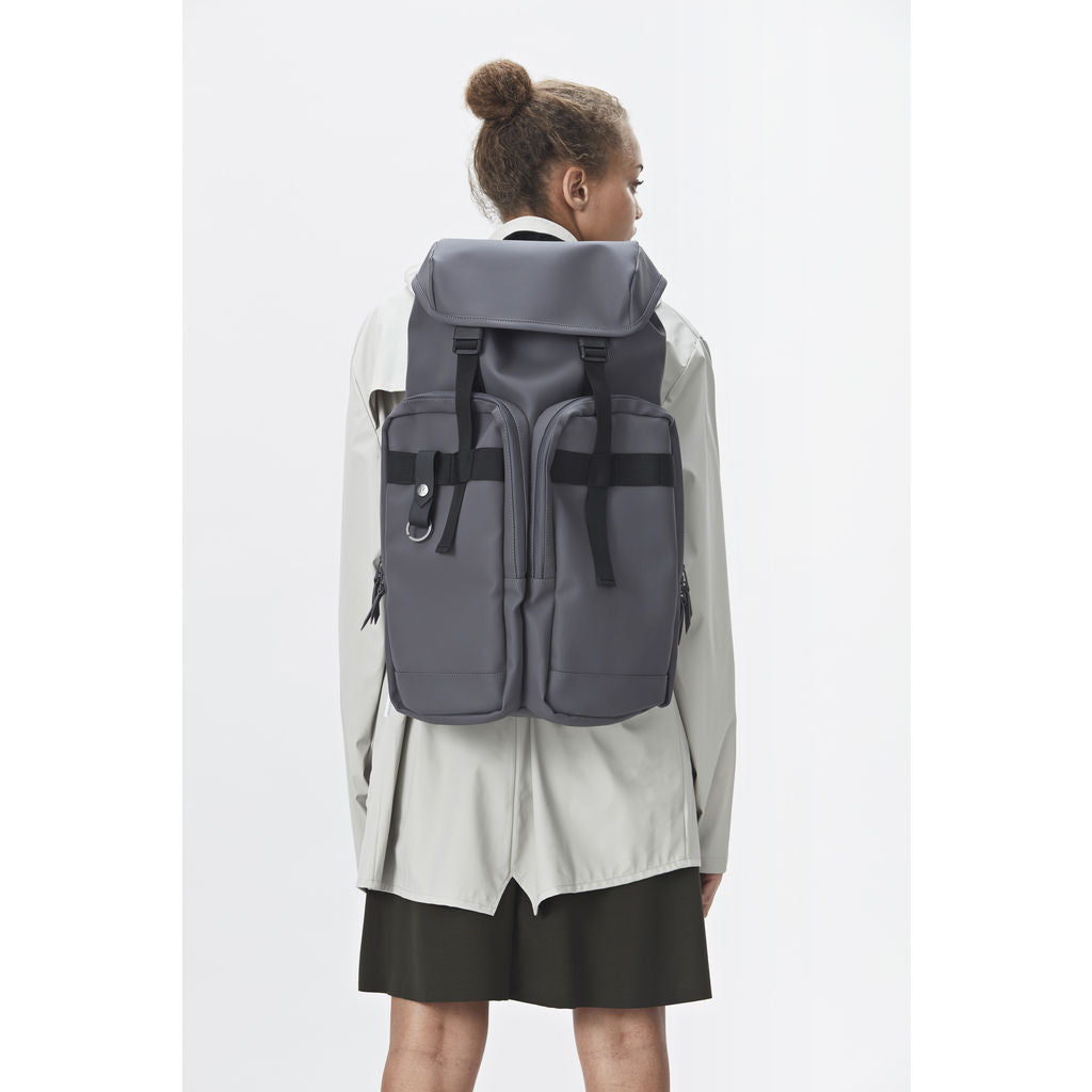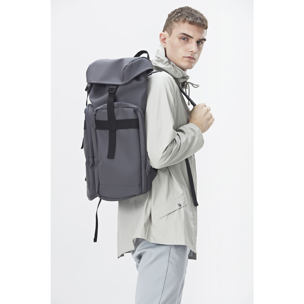 Drawing their inspiration from rock climbing, RAINS set out to craft a backpack that blended comprehensive functionality with their signature aesthetic. Thus the Smoke Waterproof Utility Bag was born. Crafted from a unique water resistant fabric with a matte finish, the Utility Backpack will protect all your belongings from the harsh nature of the elements. Featuring a spacious main compartment and two exterior zipper pockets on the front, this backpack is sleek, modern and perfect for everyday use.