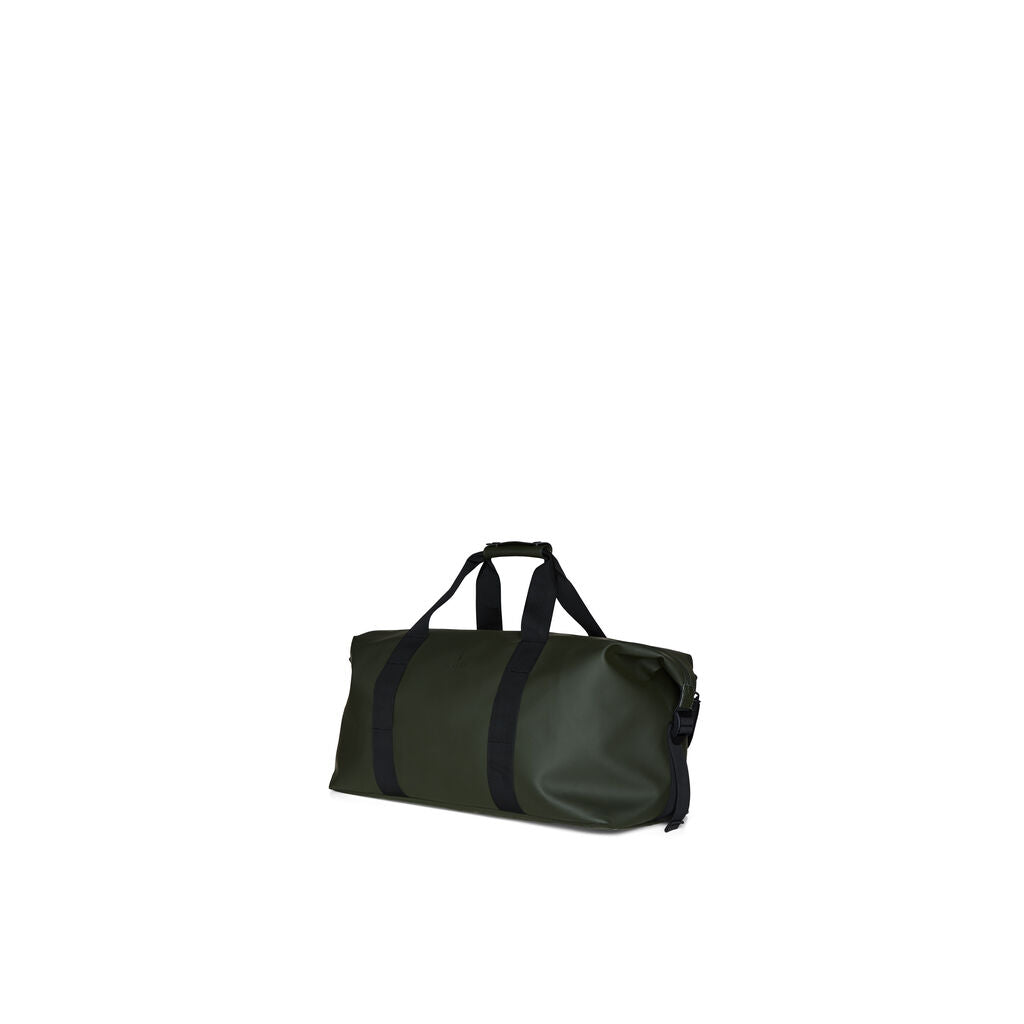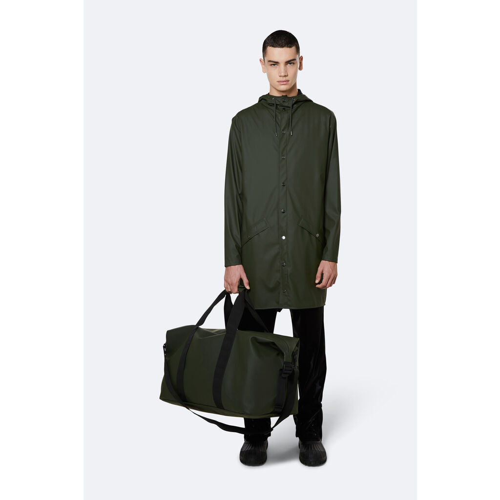 Hilo Weekend Bag Large is Rains’ take on the essential overnight bag – the largest of three sizes. The travel-favorite is clean and contemporary, balancing Rains’ waterproof fabric with signature strap and hardware details. Open the coated full-length zip to find a spacious single compartment – room for clothing, tech and more. Once packed, secure belongings via the silhouette’s side-mounted compression straps. The design is finished with webbing carry handles, with comfort sleeve, and attachment rings for an included detachable shoulder strap. Hilo Weekend Bag Large is constructed from Rains’ signature waterproof PU fabric, engineered for carrying strength, durability, and a smooth feel.