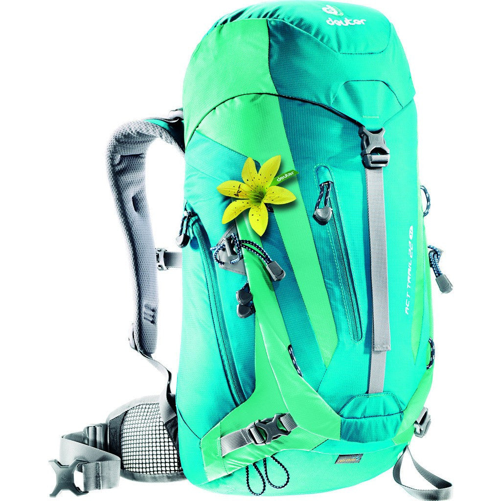The ACT Trail SL Backpack in the 22 liter size is light and versatile for a day or weekend trek. The Aircontact technology creates comfortable airflow on the back while a fold away hip belt gives optional extra support. The SL version is specifically designed for a woman's frame, optimizing the fit and load distribution for long term comfort without strain. Hit the mountains, or tour a new urban environment with this feature loaded, lightweight Deuter ACT Trail Pack.