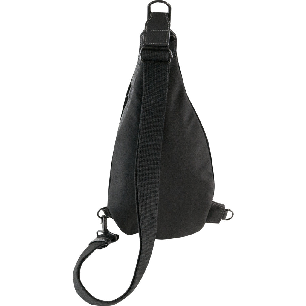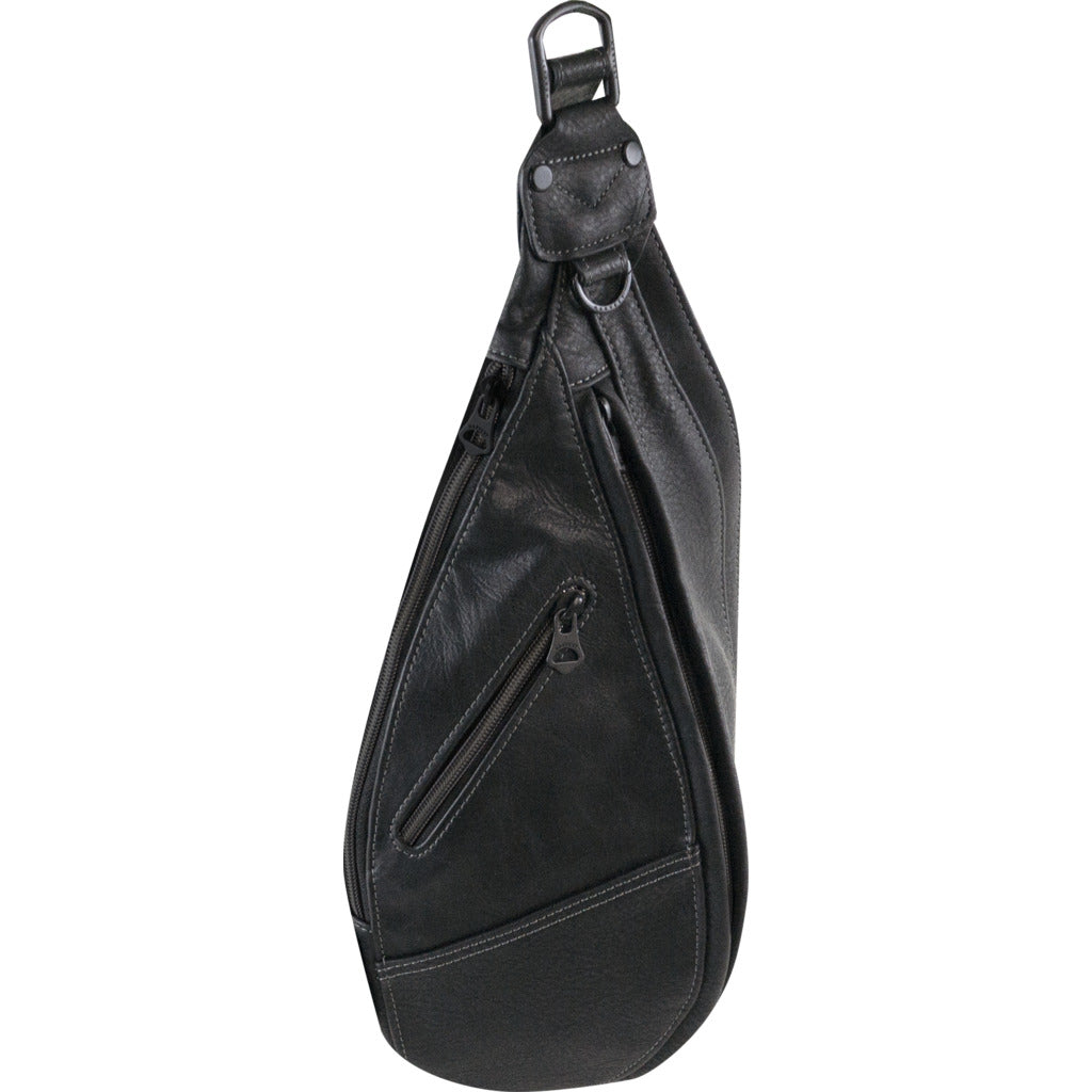 The Black Lancer Sling Pack from Harvest Label is a unique teardrop shape. This black faux leather backpack provides comfort and style all in one. There are zippers on the right and the left side so you can easily get access to your belongings even when you are wearing the bag. With an expandable shape you will be able to maximize the storage.