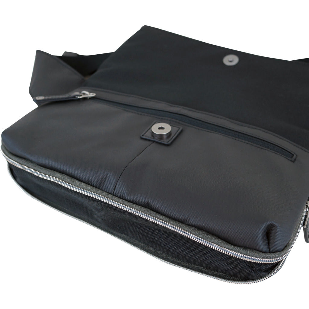- 1 zippered and 1 slip pocket under the flap cover.