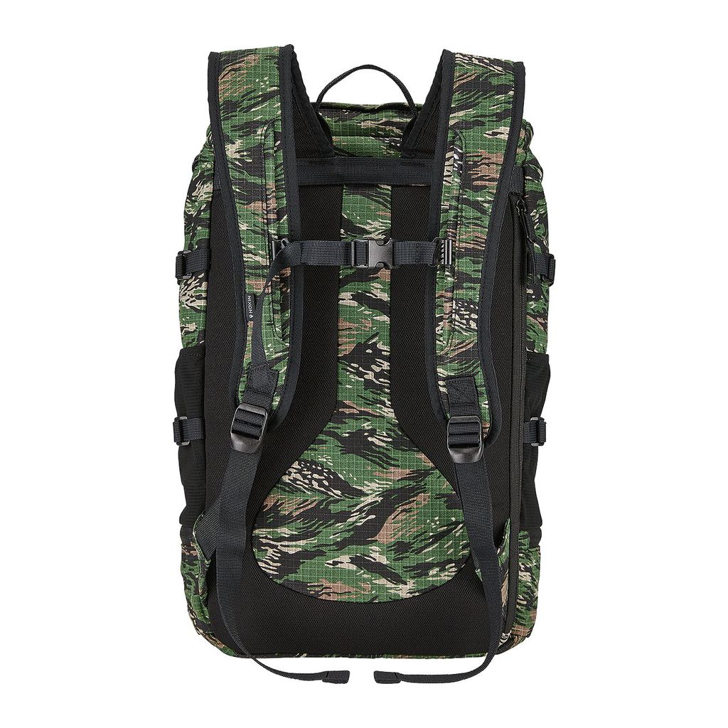 Nixon travels the world researching and testing to ensure the quality and functionality of their bags. The stylish Tiger Camo Scripps Backpack 2 features a unique top loading design and is large enough to hold everything you need without feeling overbearing. To add convenience, Nixon has outfitted the Scripps 2 with a spacious interior, a zipper closure, internal organization, vertical accessory pockets, and a side entry laptop compartment. Between the 600D polyester bottom and icon embossed 210D nylon lining, this backpack is built to last.