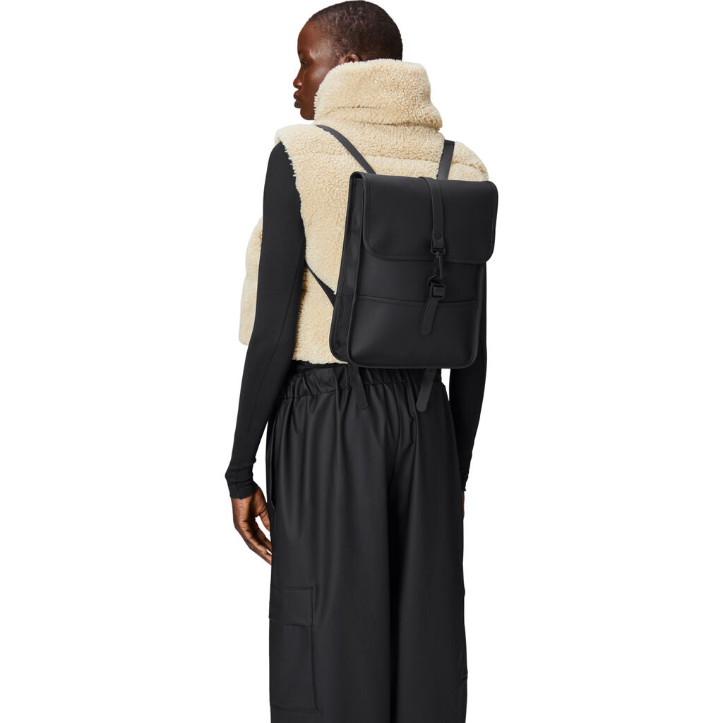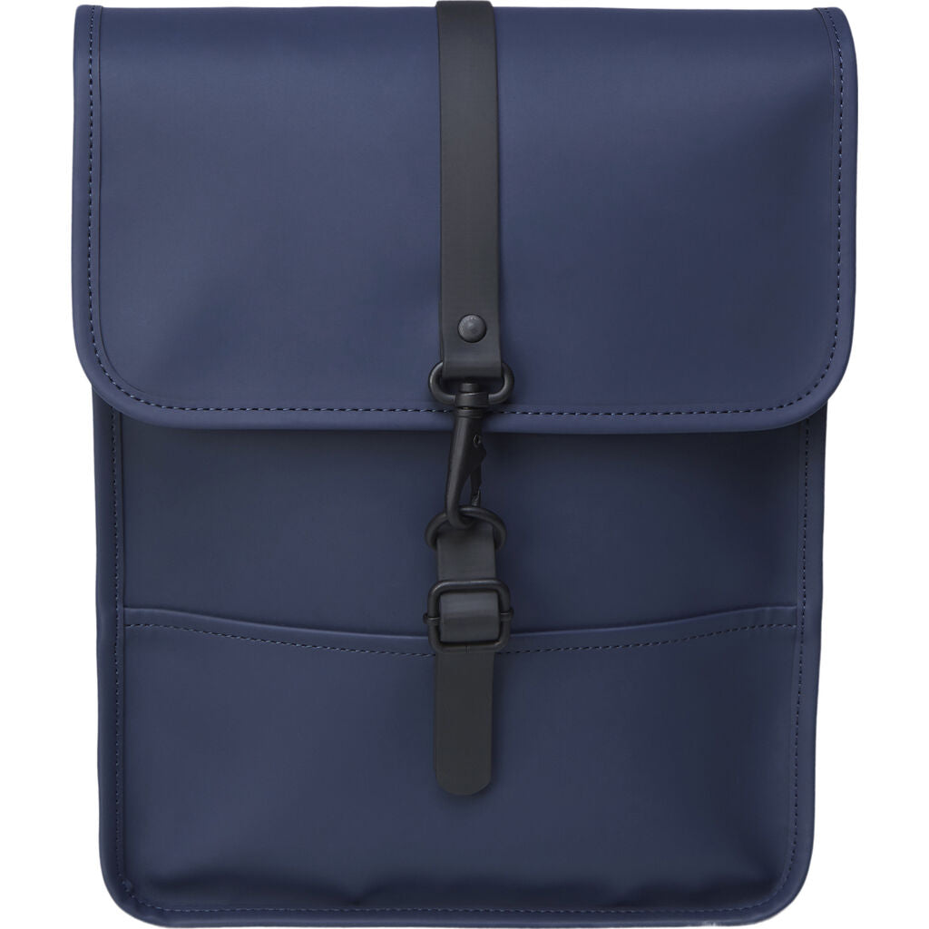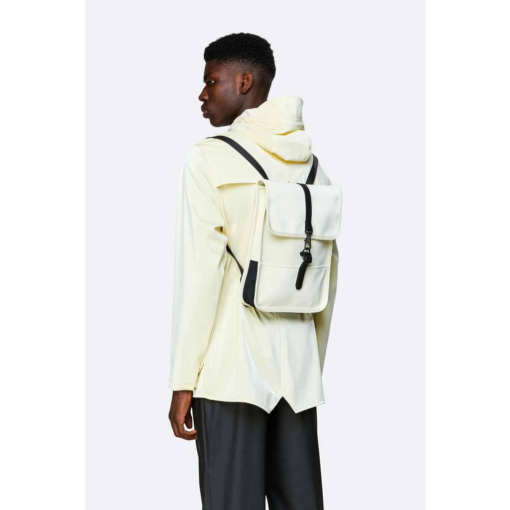 Backpack Micro is a downscaled version of Backpack. The silhouette is characterized by its prominent flap and central strap with carabiner closure. This clean and ever-contemporary waterproof rucksack features an internal laptop pocket and a main compartment. Backpack Micro is cut in Rains’ signature waterproof PU fabric, engineered for carrying strength, durability, and a smooth feel.