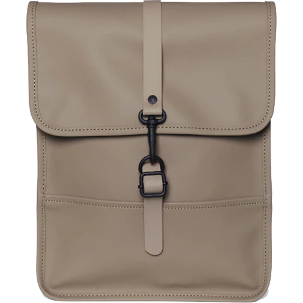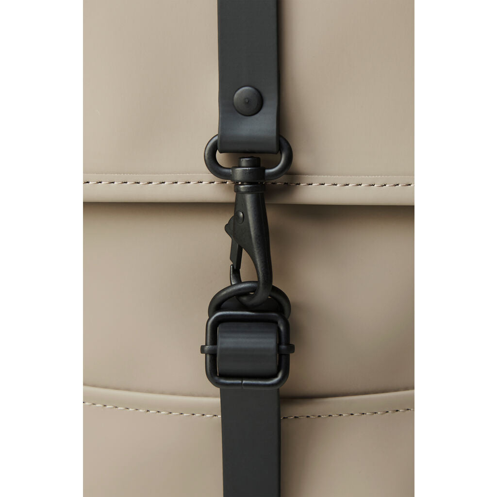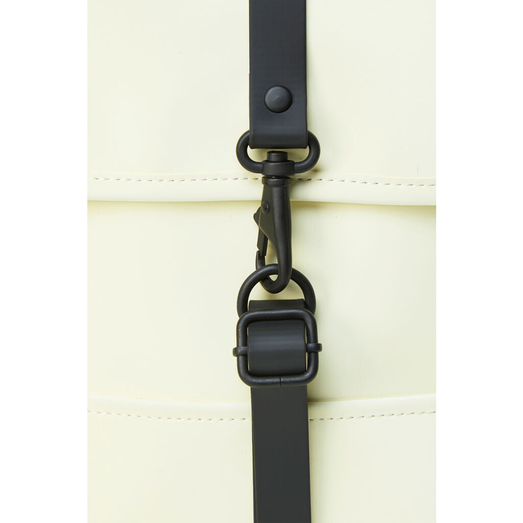 Backpack Micro is a downscaled version of Backpack. The silhouette is characterized by its prominent flap and central strap with carabiner closure. This clean and ever-contemporary waterproof rucksack features an internal laptop pocket and a main compartment. Backpack Micro is cut in Rains’ signature waterproof PU fabric, engineered for carrying strength, durability, and a smooth feel.