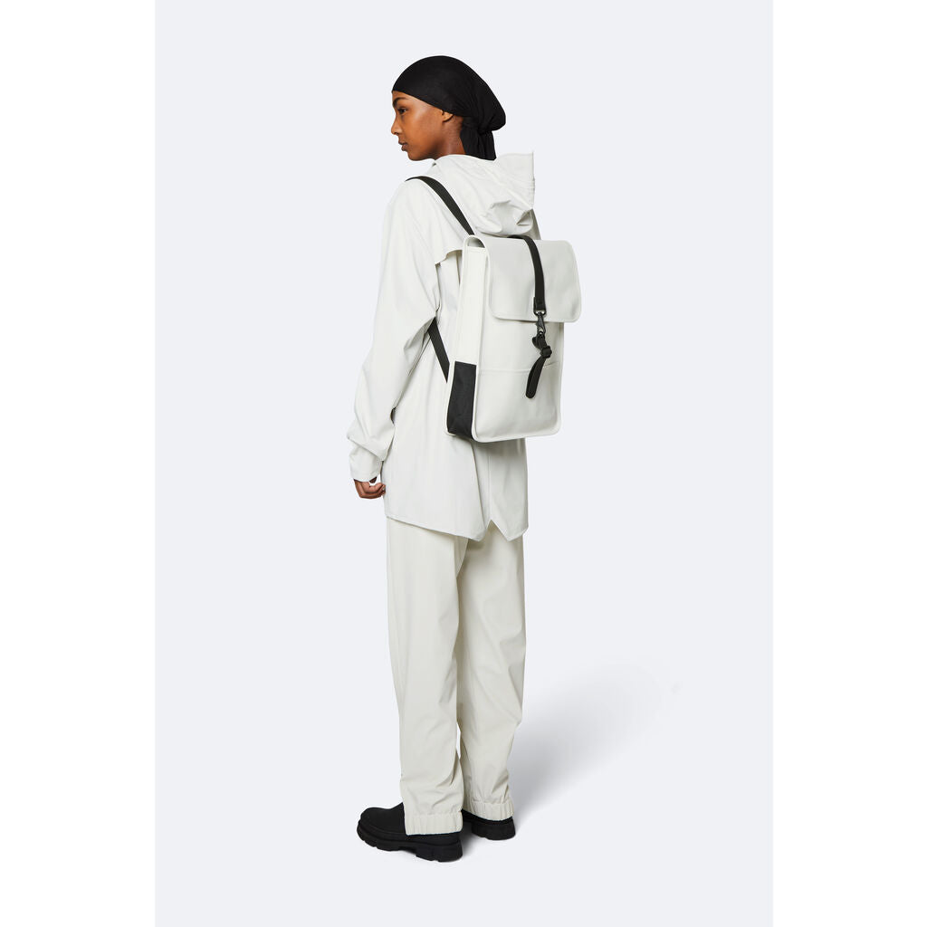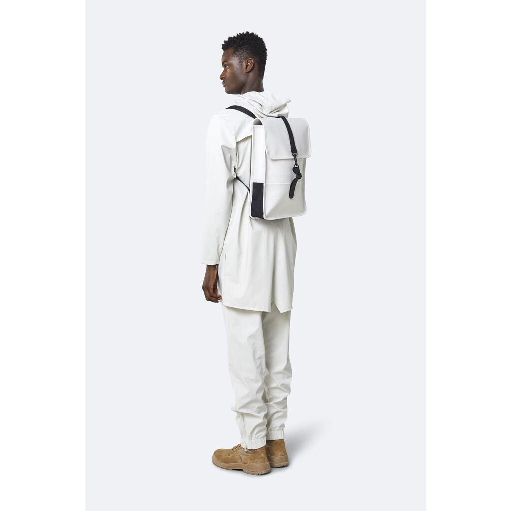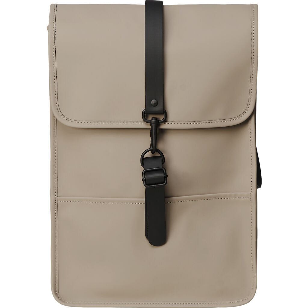 Backpack Mini is a smaller version of the classic Rains Backpack style. Made from a water-resistant fabric with a matte finish, this minimalistic yet modern rucksack has an inside laptop pocket, a spacious main compartment and a hidden phone pocket on the backside. It is completed with magnetic closings, carabiner details and adjustable straps.