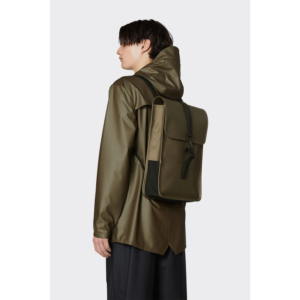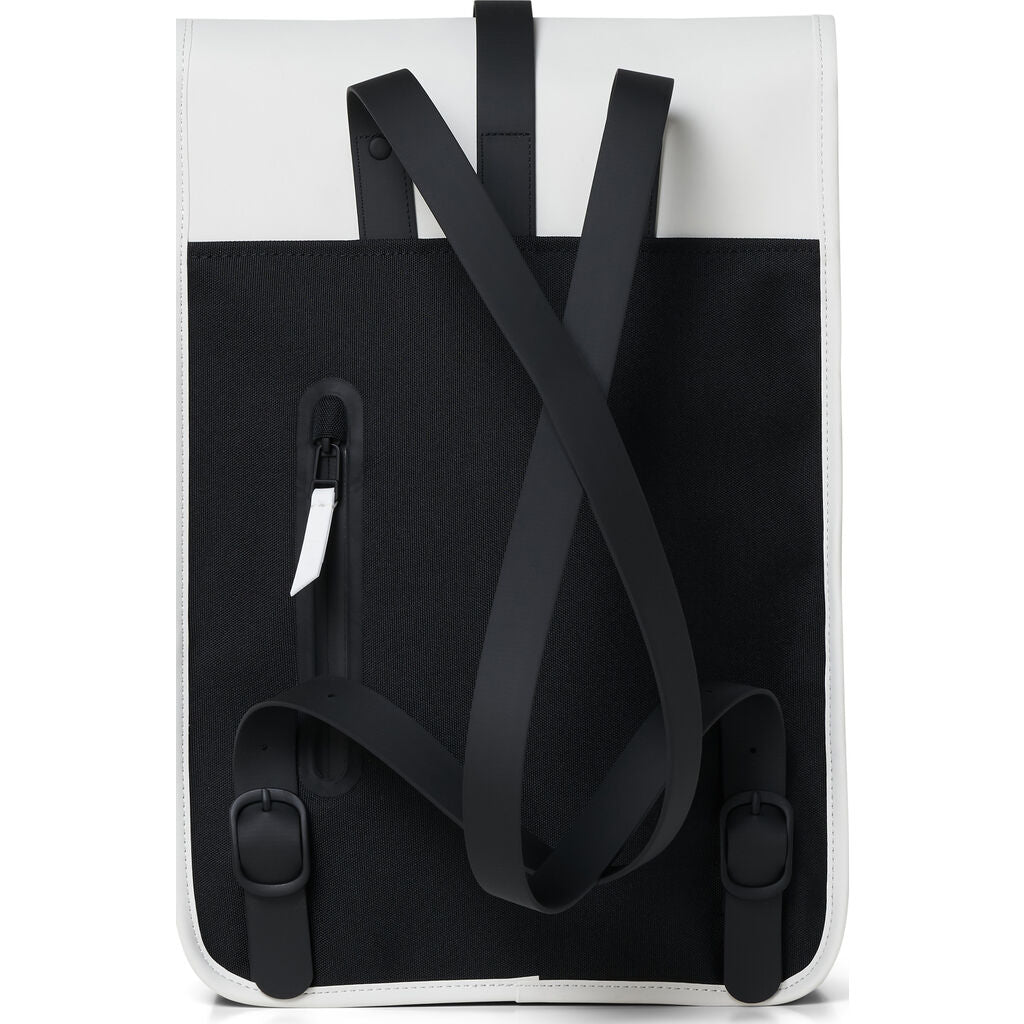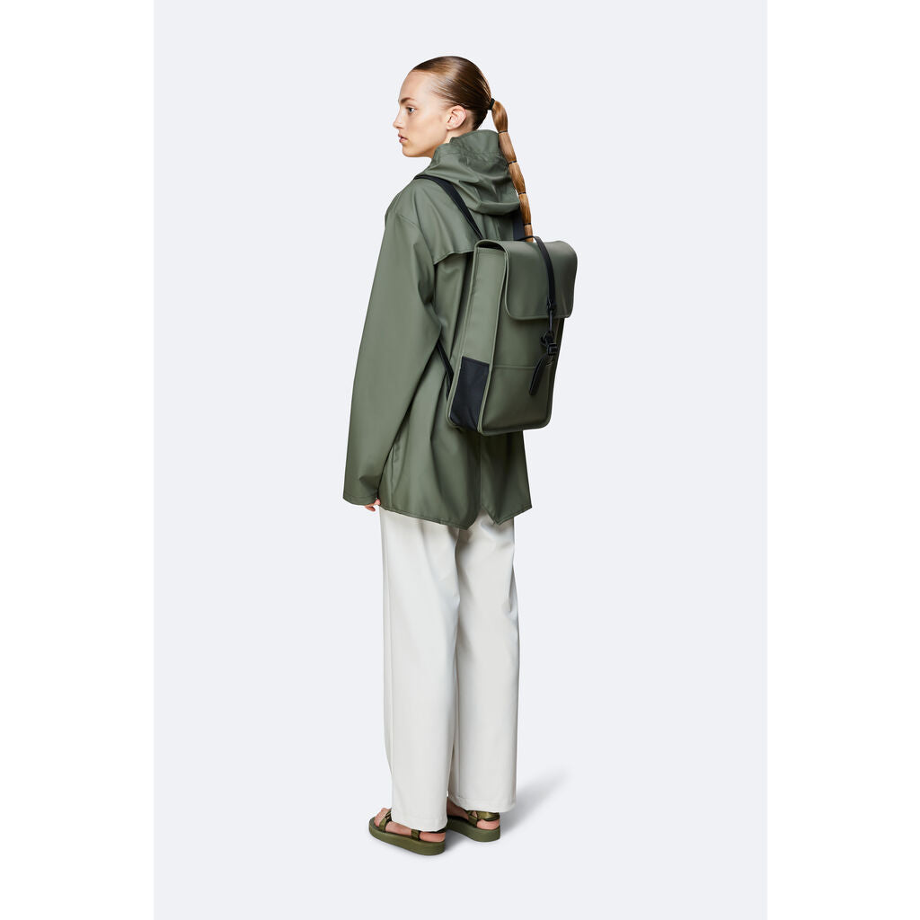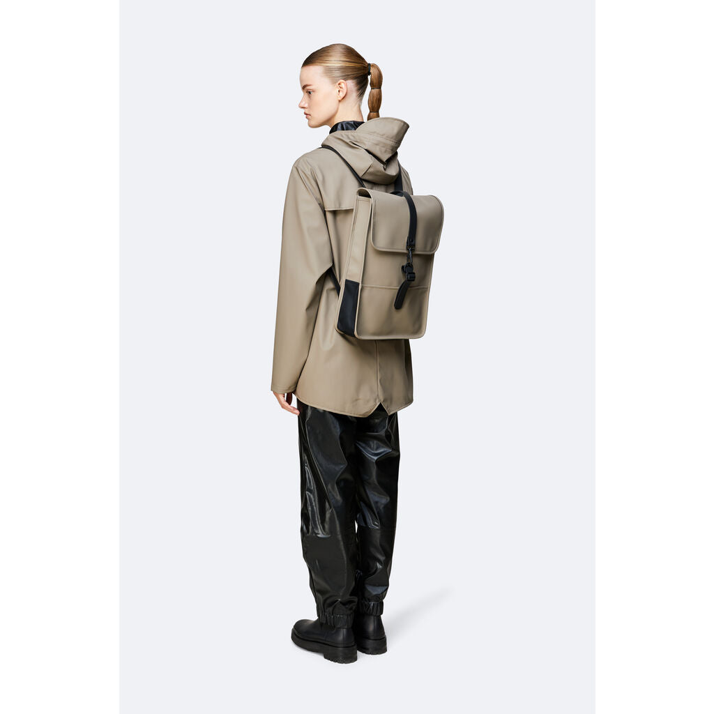 Backpack Mini is a smaller version of the classic Rains Backpack style. Made from a water-resistant fabric with a matte finish, this minimalistic yet modern rucksack has an inside laptop pocket, a spacious main compartment and a hidden phone pocket on the backside. It is completed with magnetic closings, carabiner details and adjustable straps.