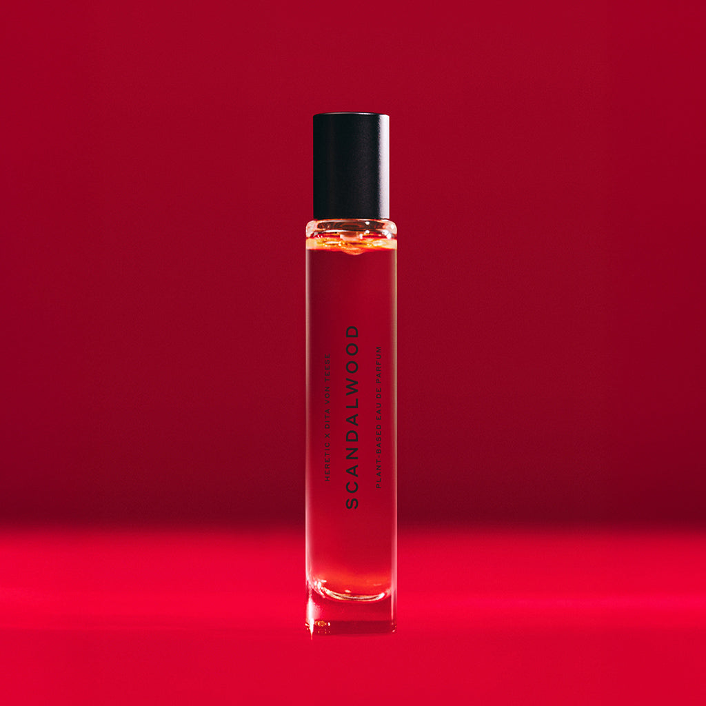Scandalwood is a mesmerizing blend of creamy Sandalwood, exotic Coriander, and voluptuous Bulgarian Rose that falls into the mysterious aspects of Labdanum and White Musk. A creative collaboration between Dita Von Teese and Heretic Parfum, it’s a scent fit for a sex siren, created with the eye of a visionary. A soft, red-lipped whisper with an all-consuming allure.