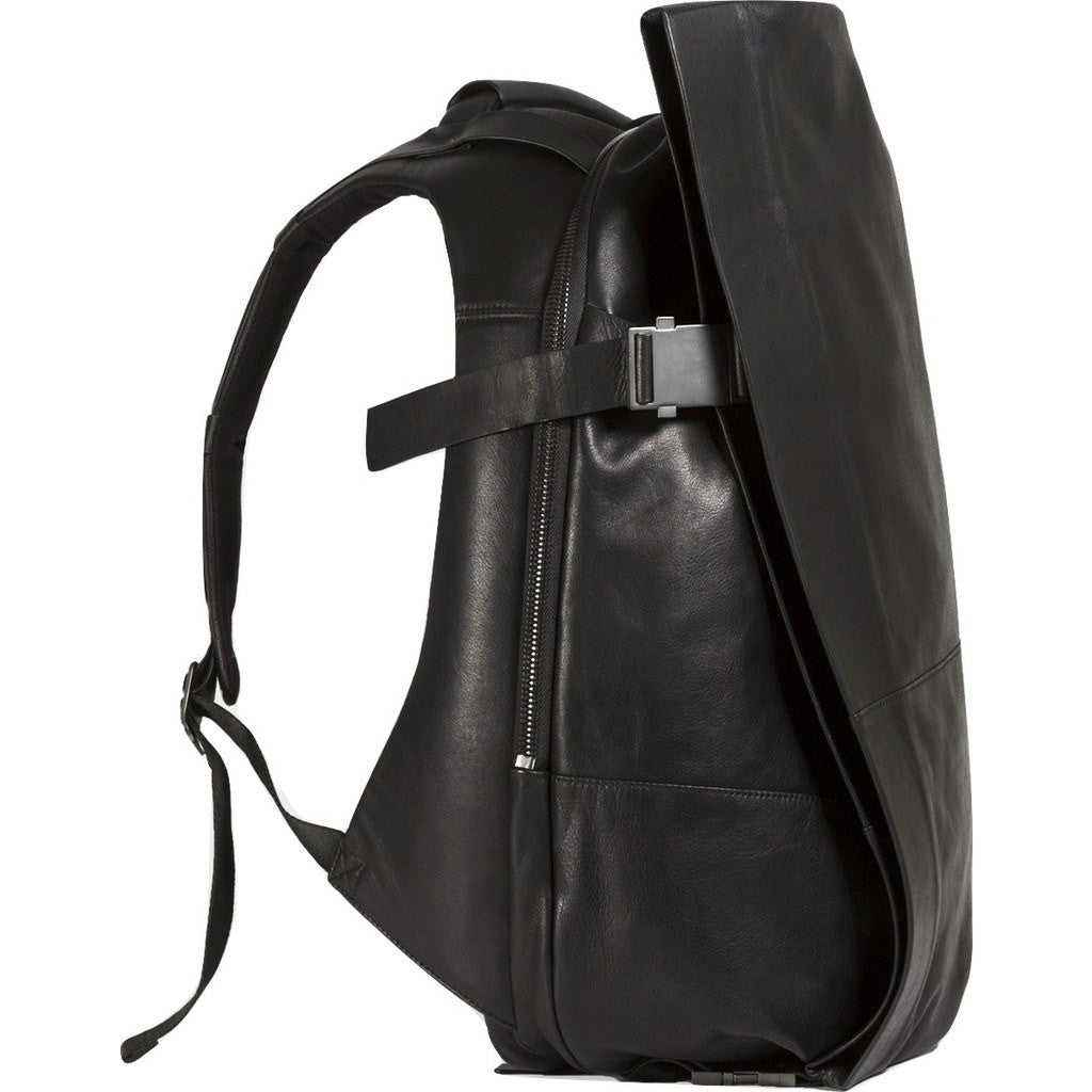 The Cote et Ciel Isar Alias Rucksack in Agate Black embodies their iconic style with flowing lines and unassuming functionality. Seemingly more of a sculpture than a backpack, the unusual shape is an exercise in ostentatious forward thinking and progressive design. The Isar Backpack is for those daily commuters looking for functionality while making a fashion forward statement. Made with soft-grained Italian leather, the exterior features a front compartment with a pocket for valuables and compression straps to organize your belongings. The separate back compartment of the backpack has a padded laptop pocket that protects your devices from 13" - 15", with mesh pockets that have space for your daily carry.