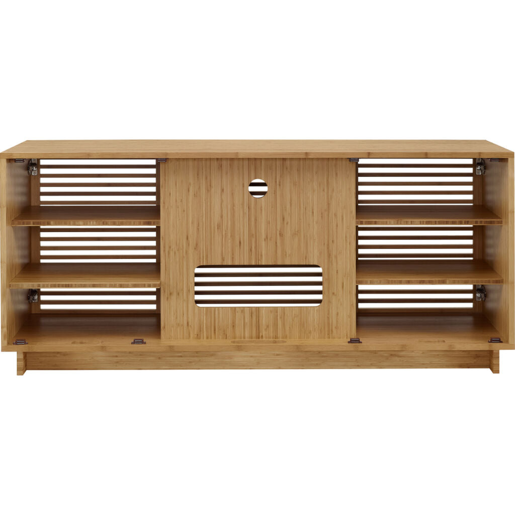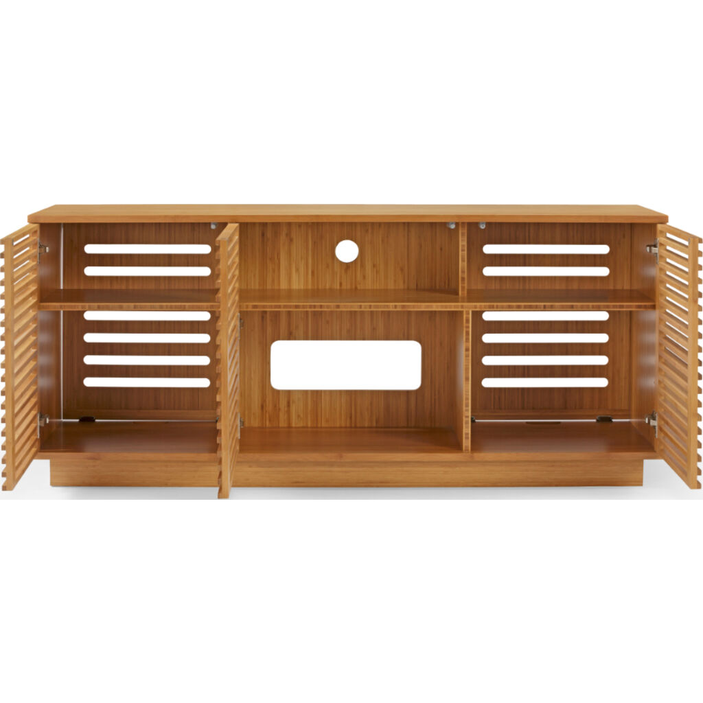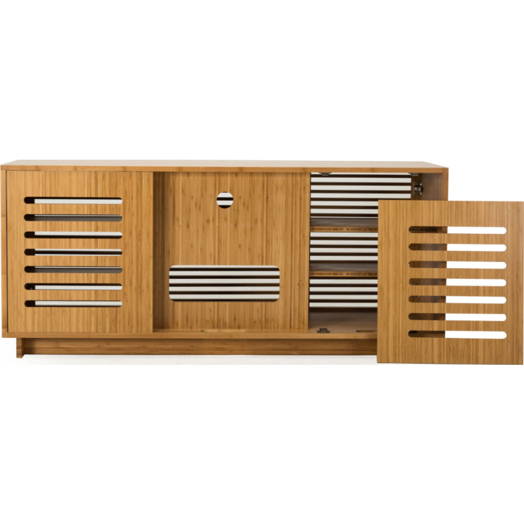 Greenington’s high performance Rowan media cabinet allows easy remote access to your media, yet keeps components hidden out of view behind beautiful louvered doors. Easy to use, the back of the media cabinet is as accessible as the front, via ventilated rear panels that can be completely removed for clear access to your cables, wiring and media components. Generous flow thru ventilation for heat control. Crafted in solid bamboo, the planet’s most eco-friendly and rapidly renewable resource.