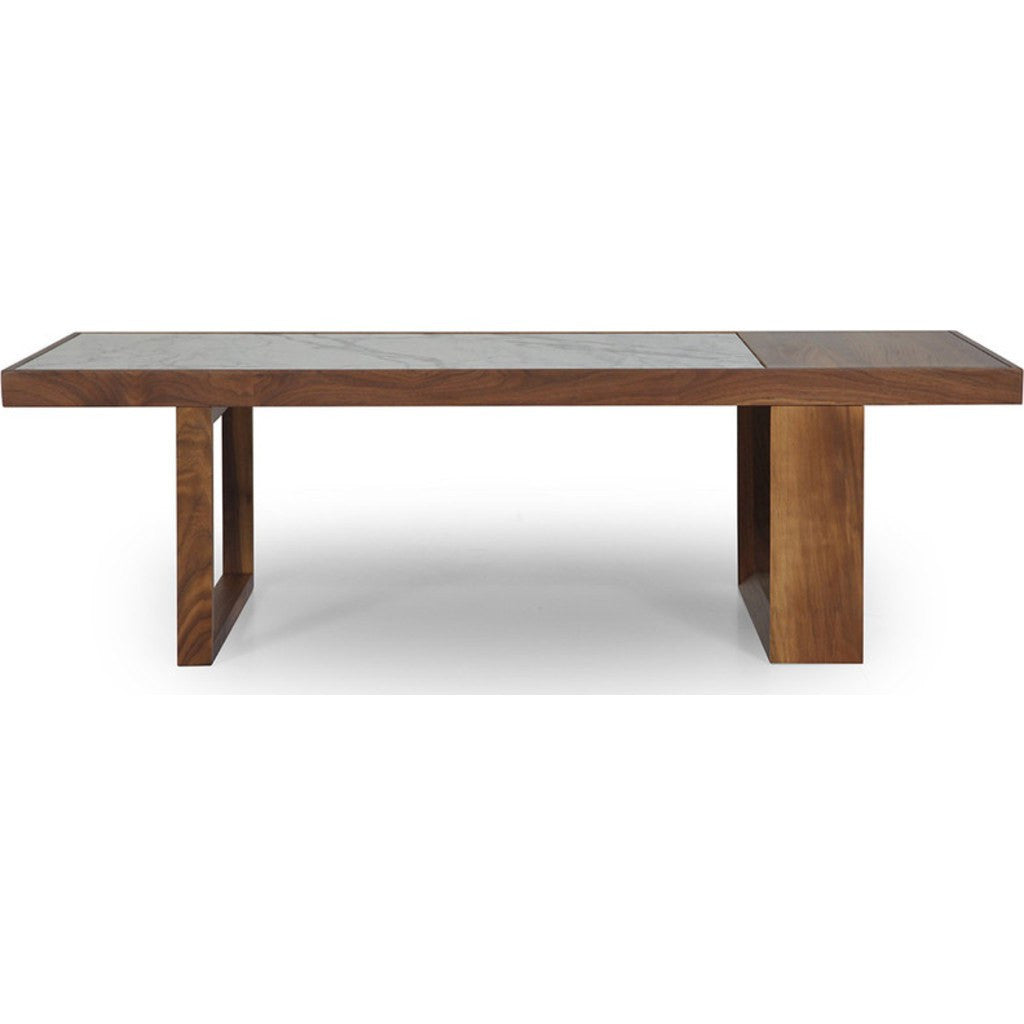 The Astor Coffee Table is a beautiful, elegant piece, contrasting rich, veined marble with solid walnut and a boxy design that lends a modern feel. The two-tone coloring of this table give it a unique look. The legs of the table have a different thickness, further creating a slight disorientation in the spacing of the table, keeping the viewer off balance and providing a new dimension. This table has the classic look to fit anywhere, the a modern twist to transform your home.
