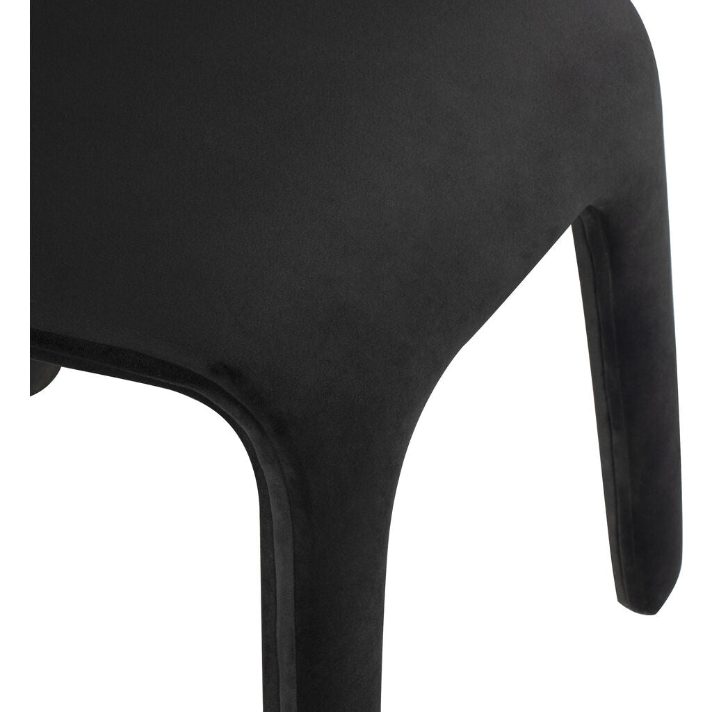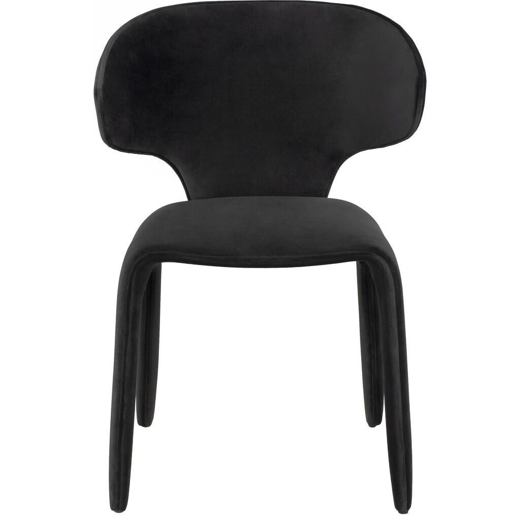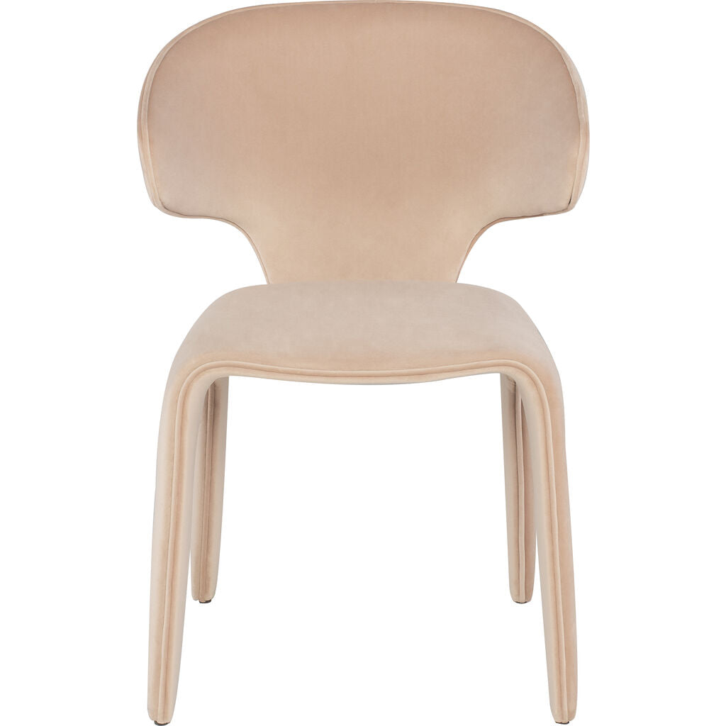 The fluid lines of the Bandi dining chair create a soft and organic addition to any dining room. In rich velour, the gently curved back makes a graceful statement from behind. Its beautifully constructed with sturdy, upholstered legs and a shapely design.