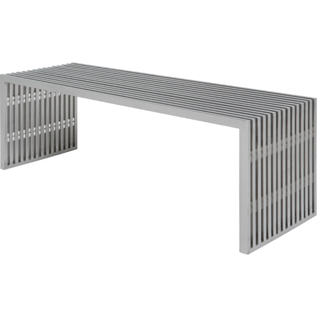 The Amici bench is a striking example of dynamic, articulated minimalism. The brushed stainless steel frame conveys a linear aesthetic, uniquely modern and textured. The Amici is ideal for a wide range of spaces contemporary, urban or eclectic, either commercial or private.