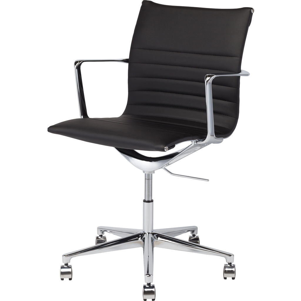 A comfortable seat whether your a hardworking professional or leisurely gamer; the Antonio Desk Chair breaks the mould of tired office chairs with quality construction and modern aesthetics. Featuring comfortable CFS foam thats been upholstered in a supple naugahyde, this swiveling desk chair is an ideal choice for work or play.