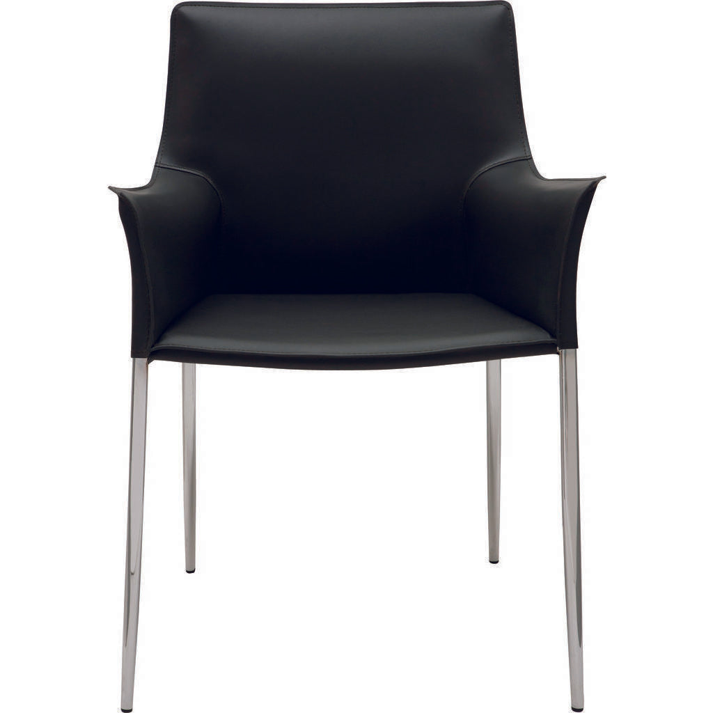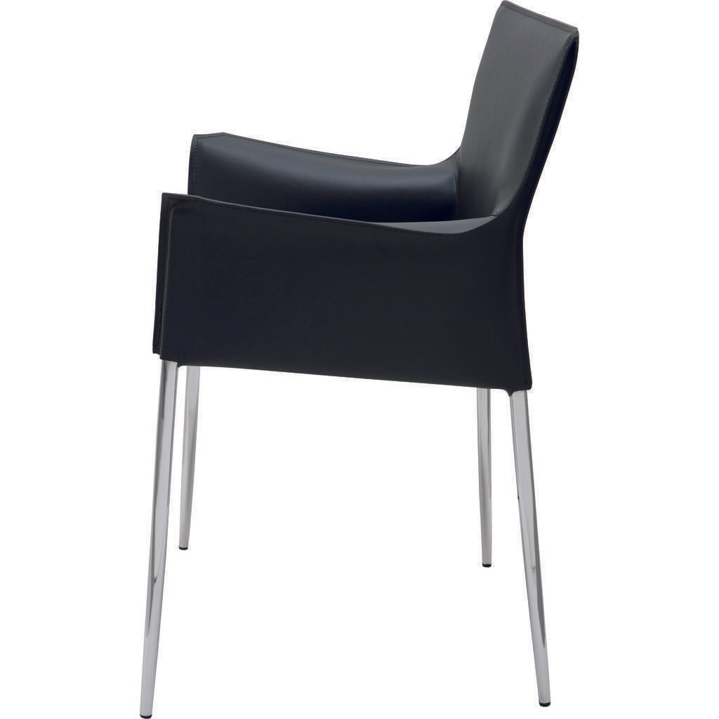 Welcome some contemporary elegance into your dining room with the clean, modern lines of the Colter Dining Chair. Crafted with steel legs finished in a rich polished chrome, each Colter is upholstered with supple black leather.