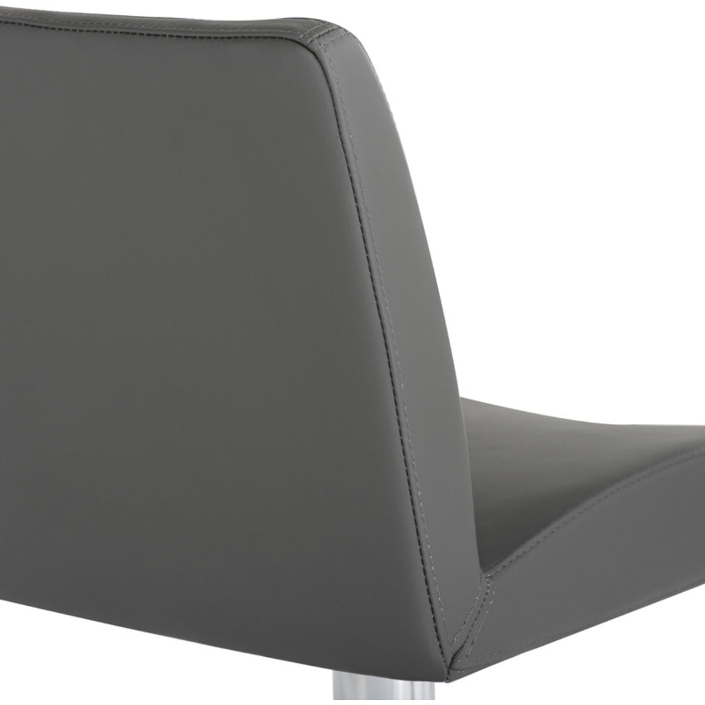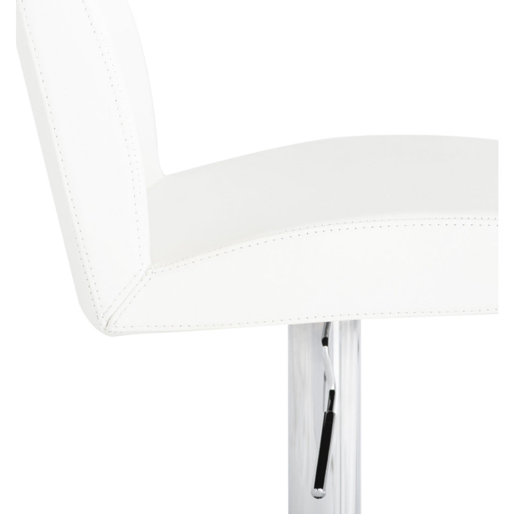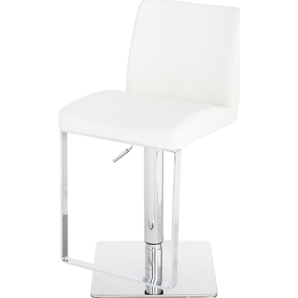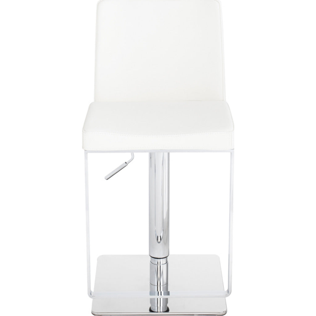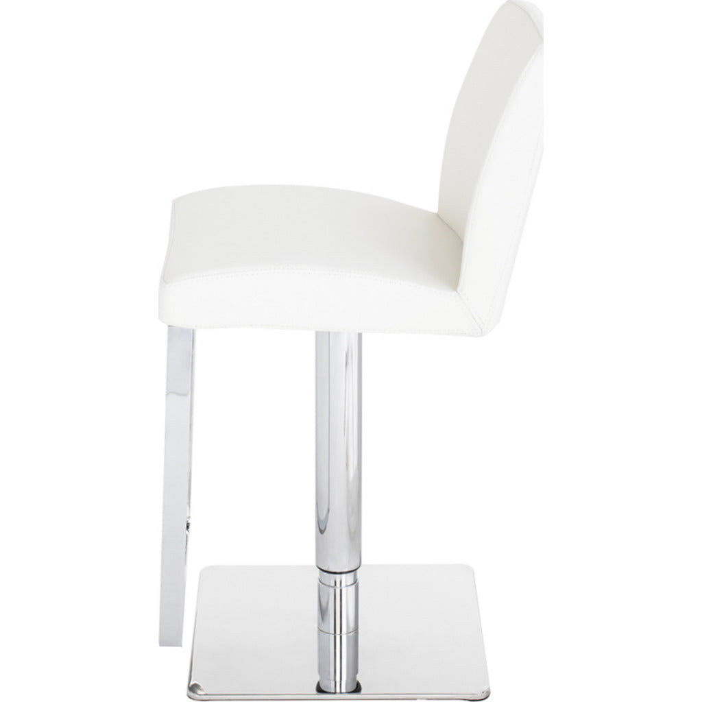 The Matteo adjustable stool combines crisp modern design with comfortable, easy, functionality. The bar seat is made with leather, accented by a wrap-around high polish stainless steel foot rest. The hydraulic stainless steel base adjusts height up and down with the simple squeeze of a discreet hand lever placed within easy reach under the bar seat. Adjustable between 32 inches and 42 inches.