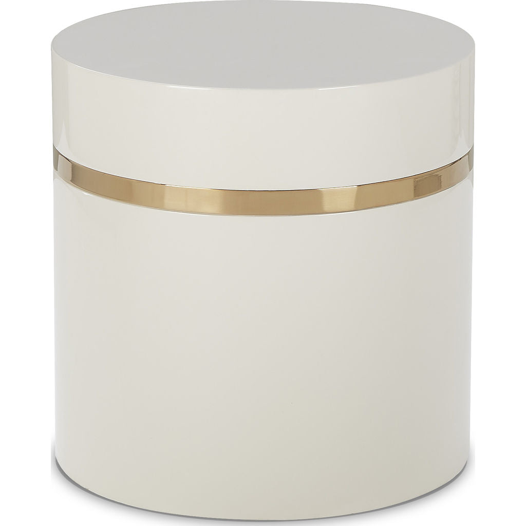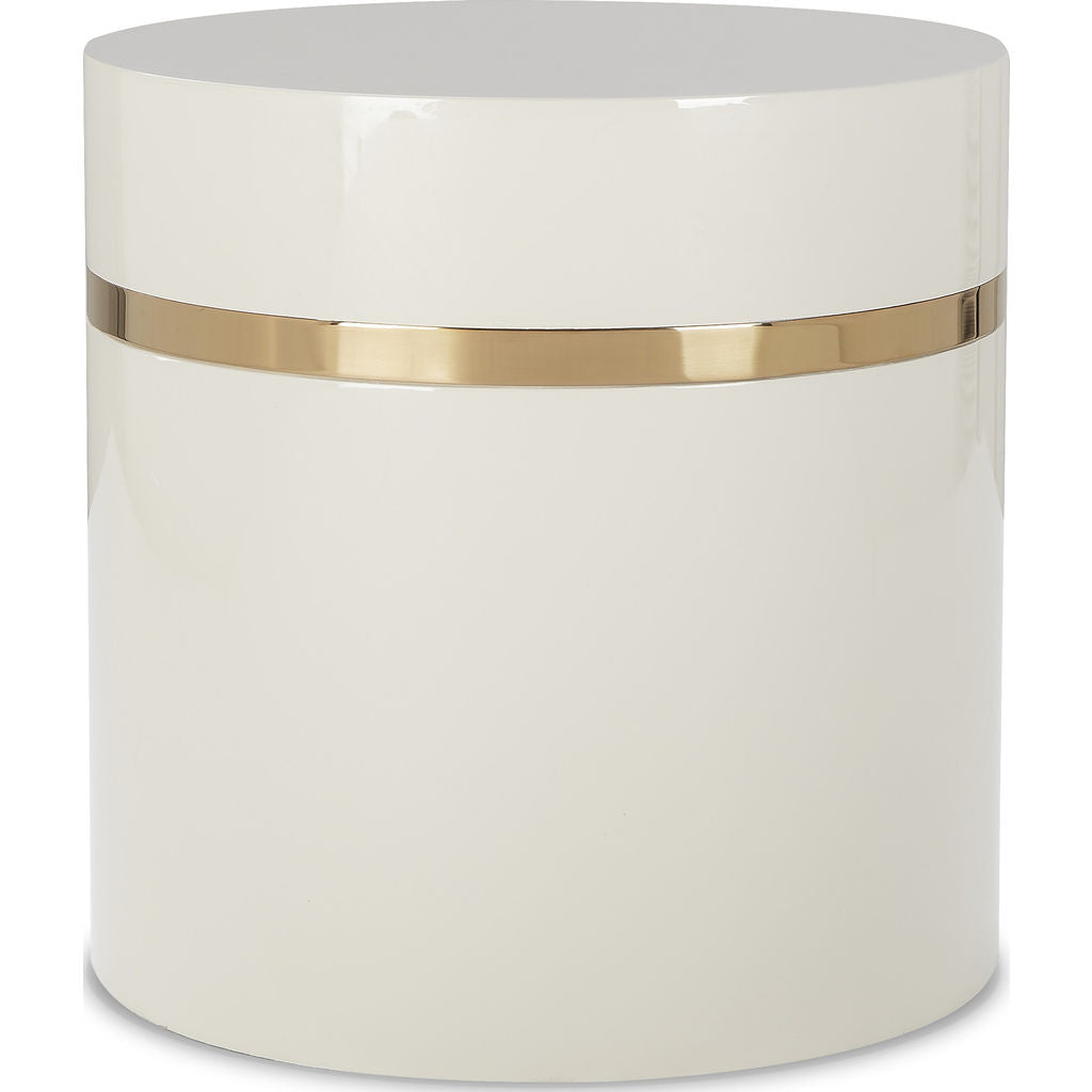 One of the signature pieces in designer Kelly Hoppen's Retrospective Collection, this side table is comprised of cylindrical forms and finished with high gloss lacquer. Featuring a stainless steel trim finished in rose gold, the Ella Accent Table is versatile, multi-functional, and works phenomenally in pairs or groups.