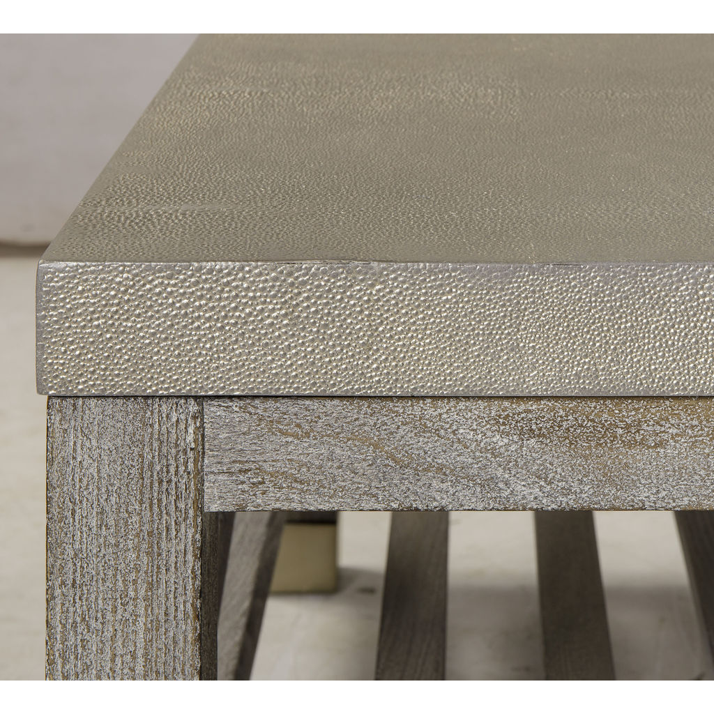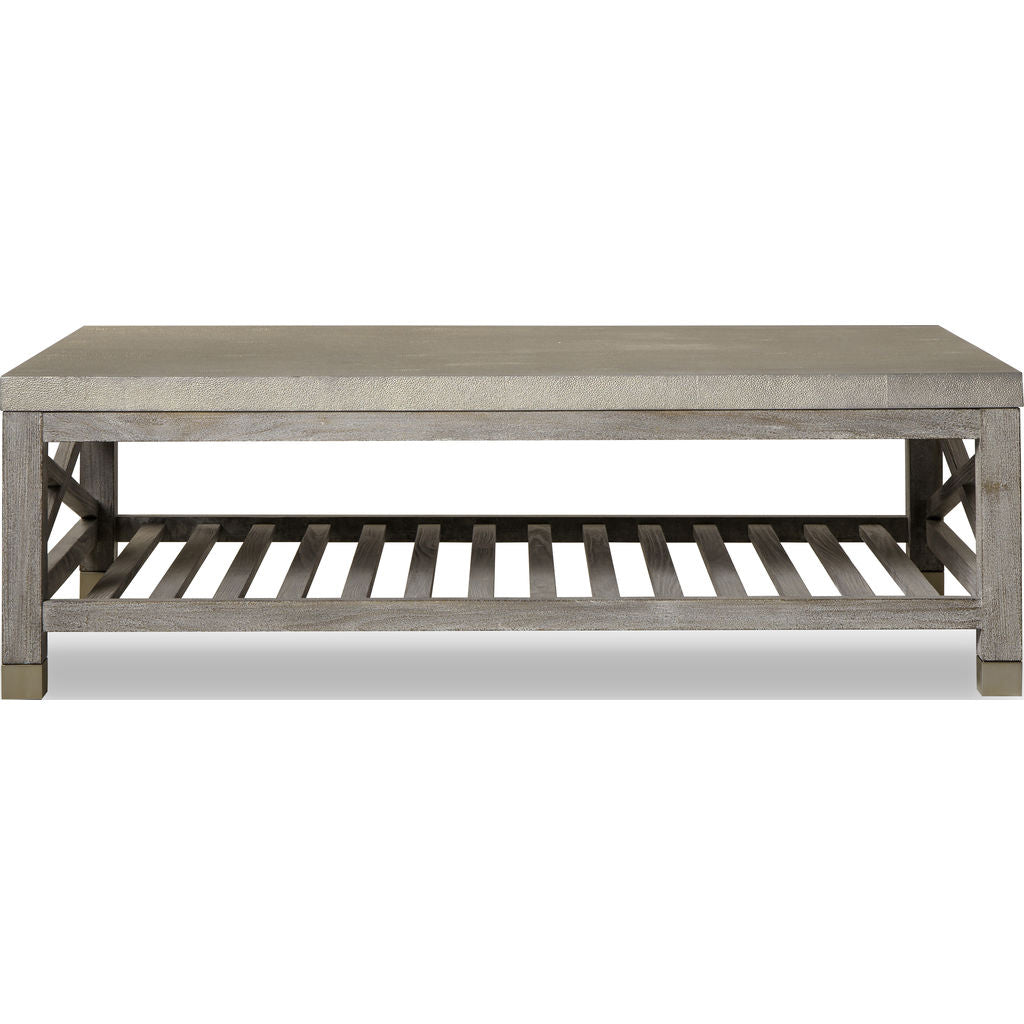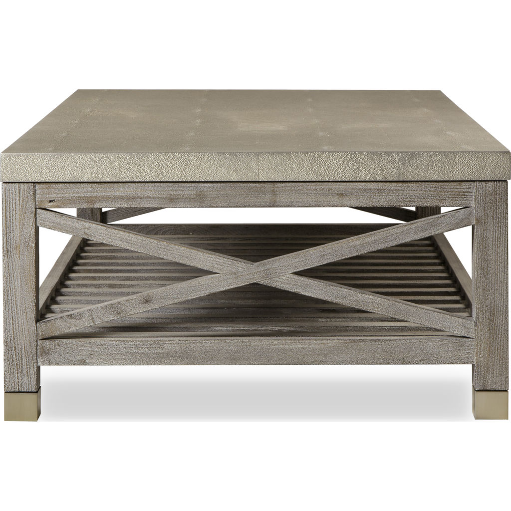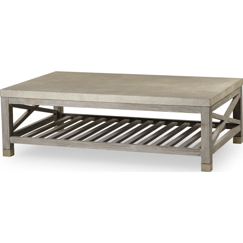 Elegant neutral tones combine with clean, geometric lines to bring you another interior accent piece from designer Andrew Martin and Resource Decor. Crafted from poplar wood sourced in the US, this tables striking contemporary appearance stems from the use of a champagne shagreen finish on the table top, and a wash gray finish on the coffee table's frame.