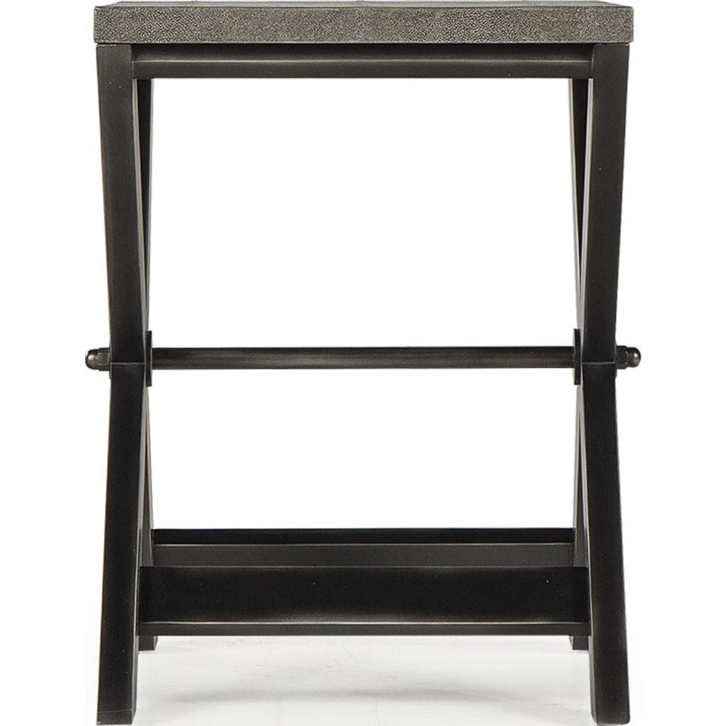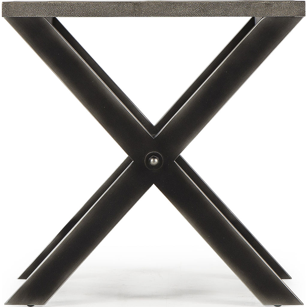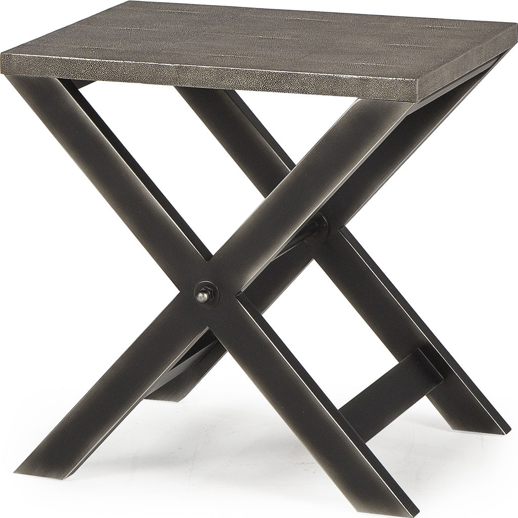 A clean-lined, minimalistic form from designer Andrew Martin, the Stanley Side Table features an iron, X-leg frame with a striking faux shagreen table top. A subtle, yet elegant addition to any modern interior space.