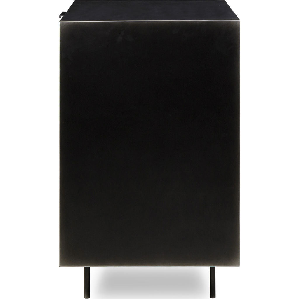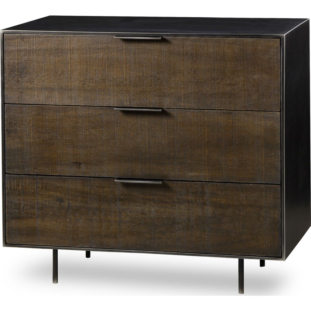 The 3 Drawer Tribeca Chest from designer Thomas Bina is crafted using a cold-rolled steel frame in an ebonized black coloration. Centered with 3 drawers, this storage unit showcases the natural grain of Brazilian Walnut wood.