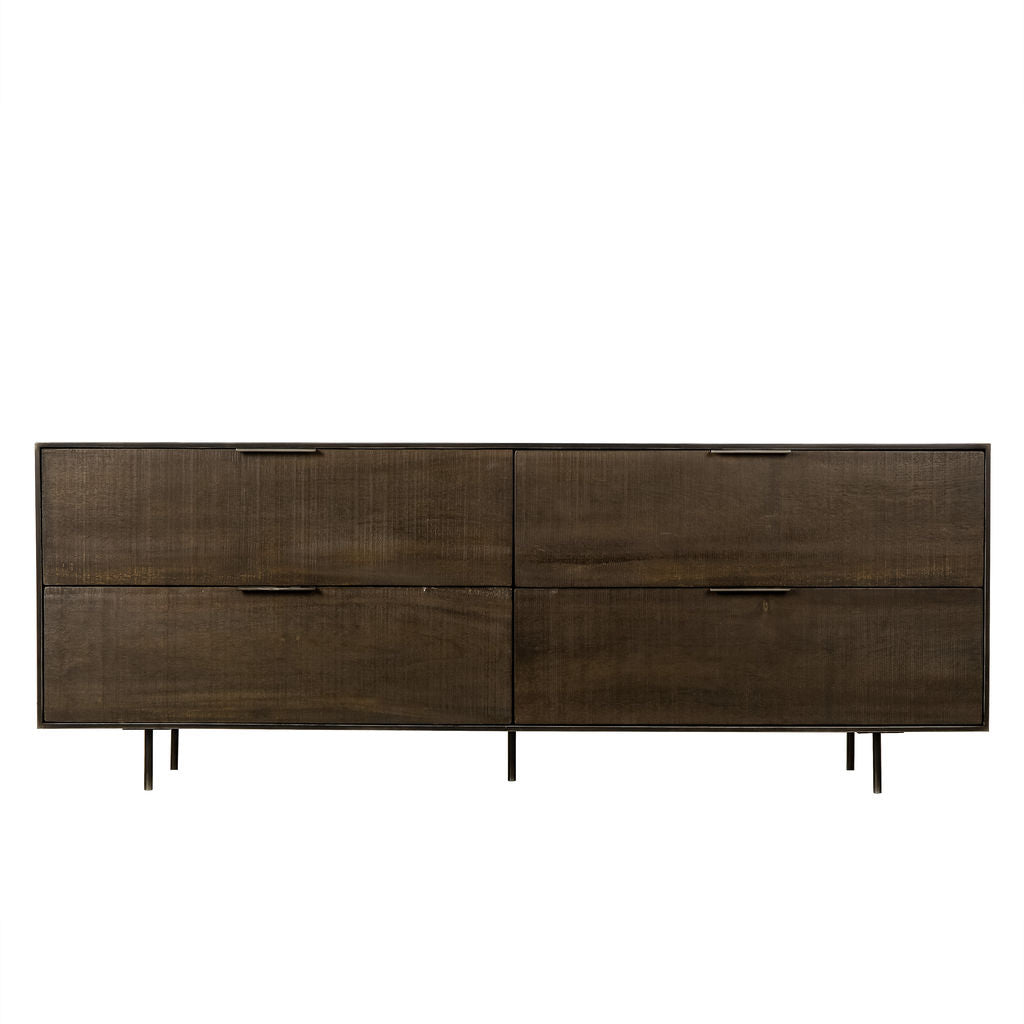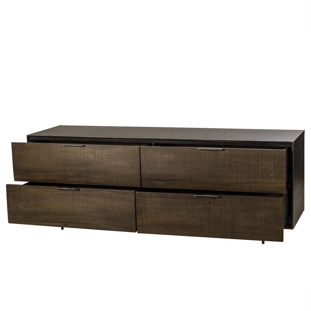 The Tribeca Dresser from designer Thomas Bina is crafted using a cold-rolled steel frame in an ebonized black coloration. Centered with 4 drawers, this storage unit showcases the natural grain of Brazilian Walnut wood.