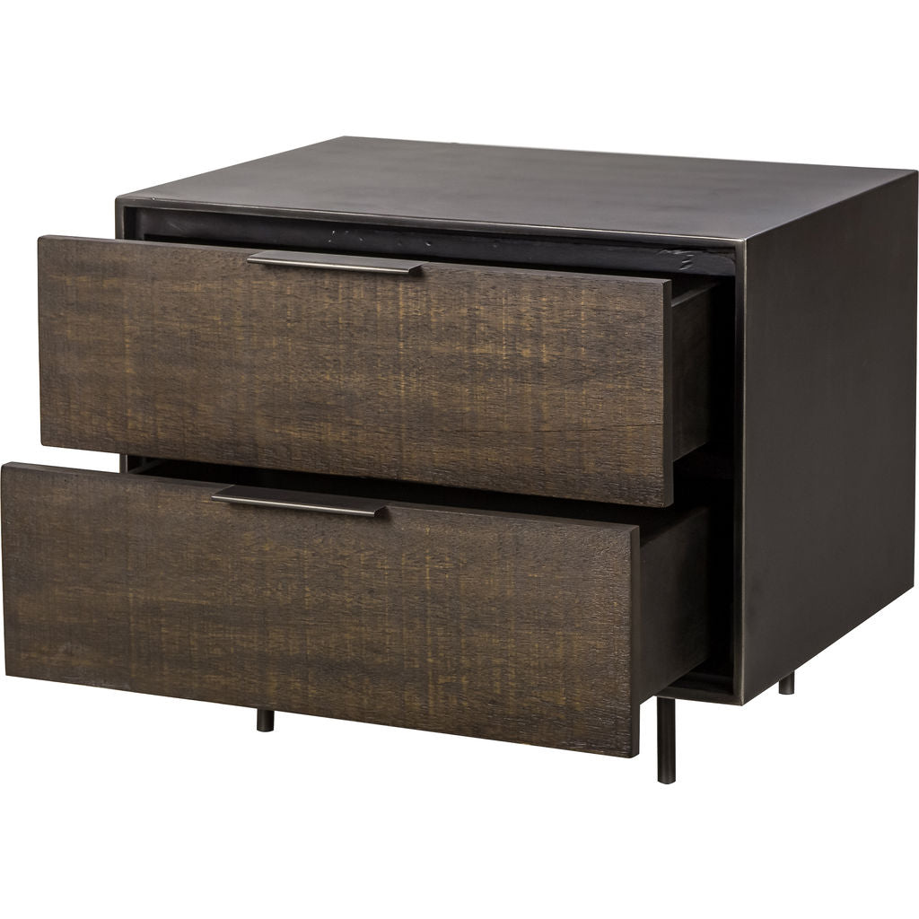 The Tribeca Nightstand from designer Thomas Bina is crafted using a cold-rolled steel frame in an ebonized black coloration. Centered with 2 drawers, this storage piece showcases the natural grain of Brazilian Walnut wood.