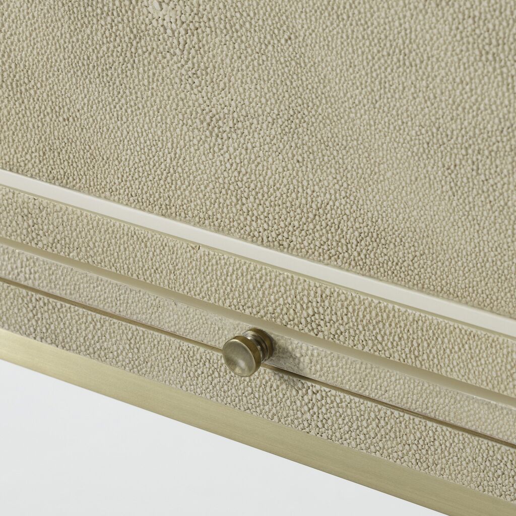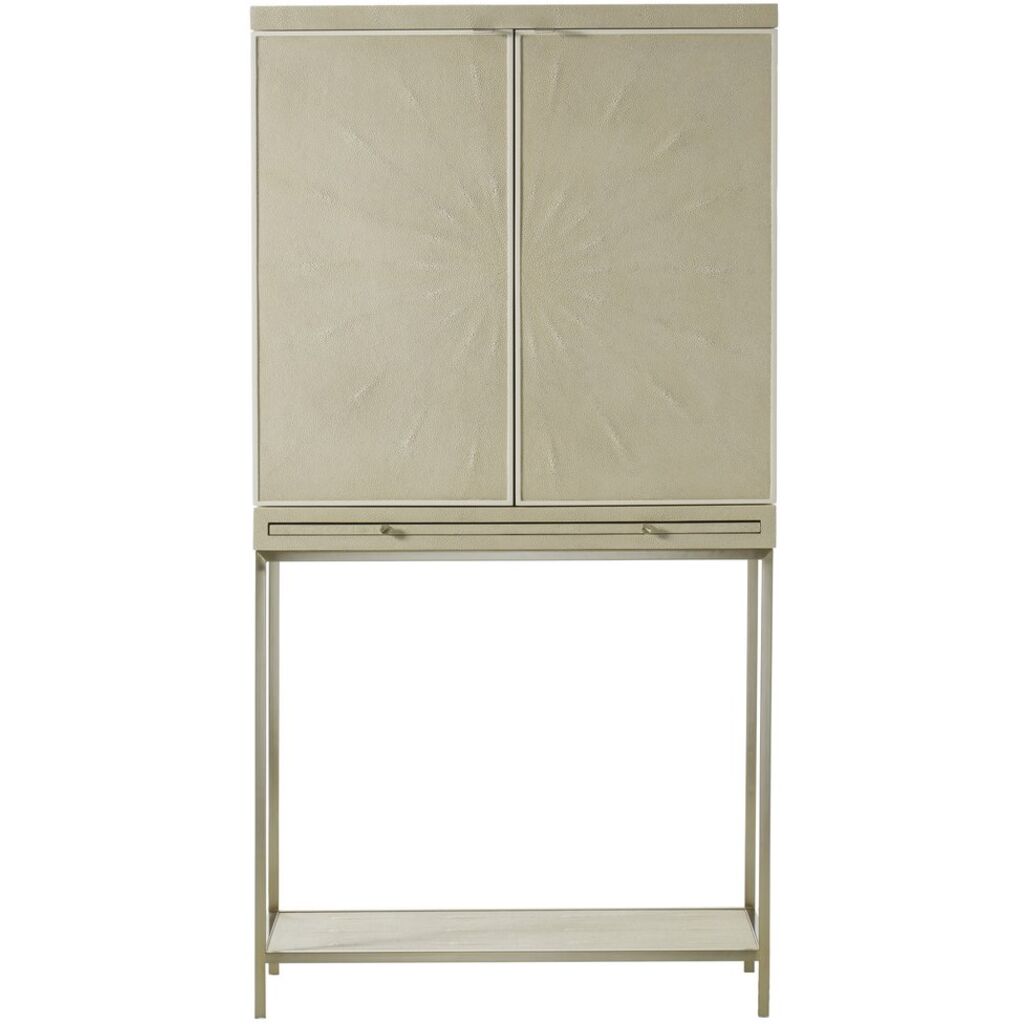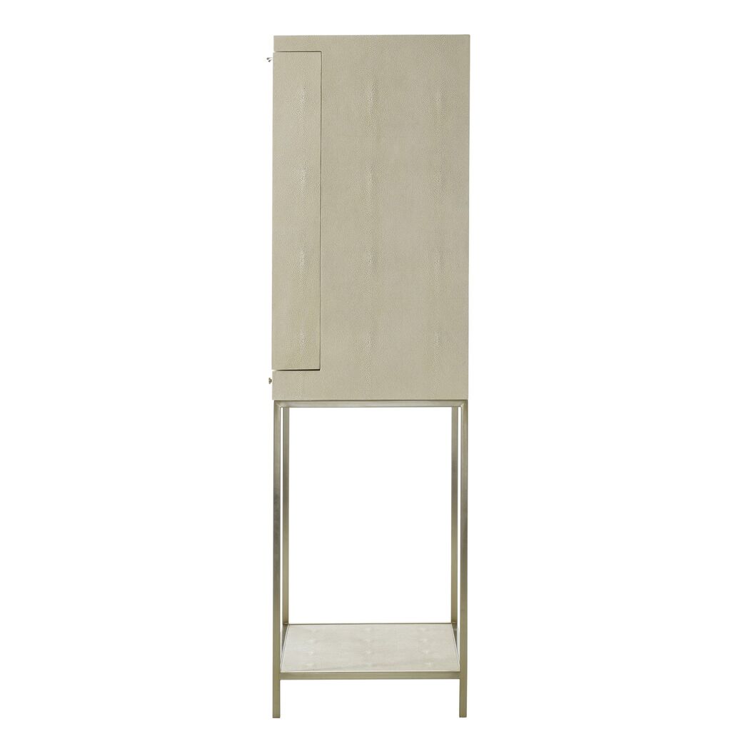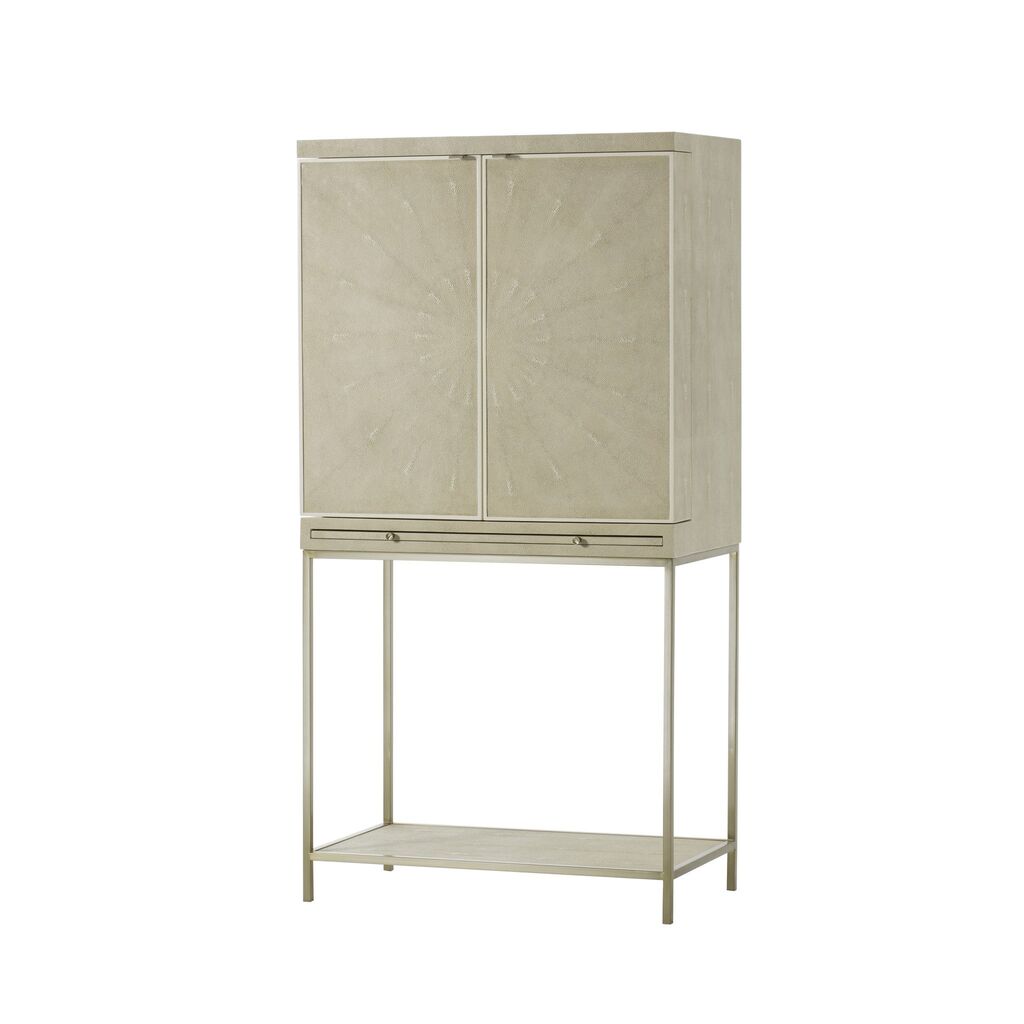 Standing tall, this elegant bar cabinet has a range of enviable features which bring all the necessities of a bar together in one piece. It encompasses simple sleek lines crafted with luxurious faux shagreen, held by delicately slim, stainless steel legs. Entertain in style with this attractive piece. ? Due to the nature of shagreen, the coloring may vary from one piece to another, these differences add to the natural beauty of the product. The color may also vary with time.