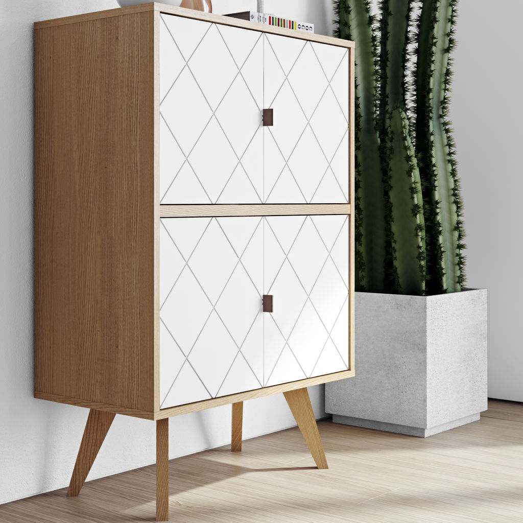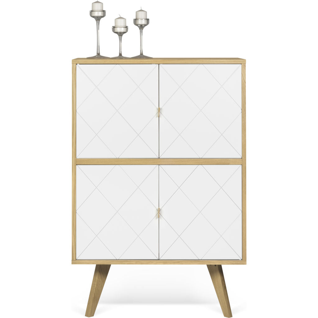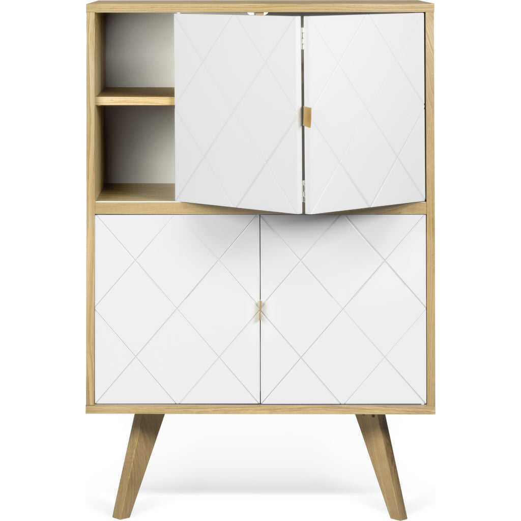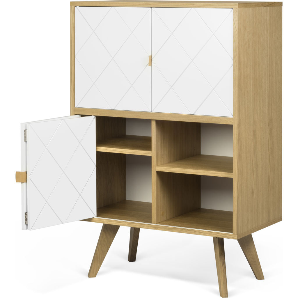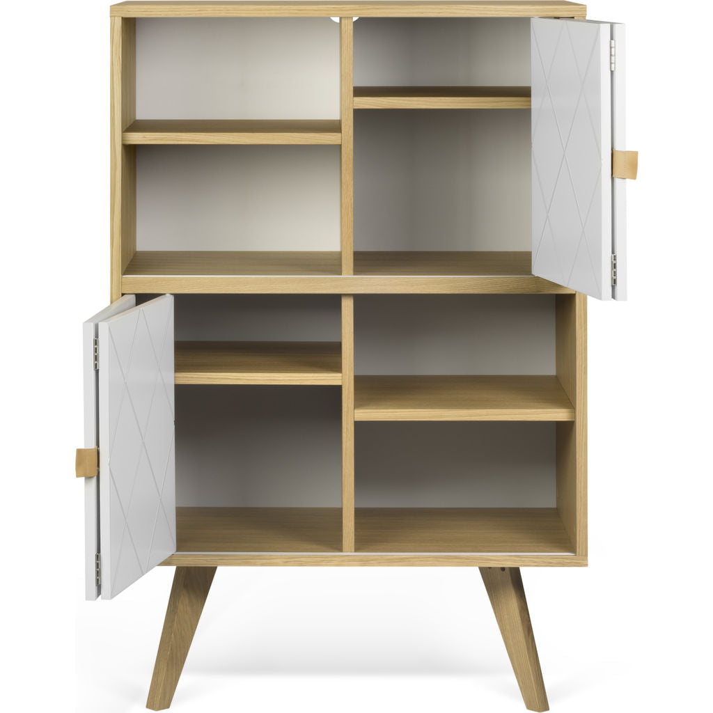 The Niche Cupboard from TemaHome is an elegant, minimalist storage piece crafted using clean lines and simple shapes. Drawing its unique beauty��its the painstaking details, the Niche Cabinet boasts a striking geometric��pattern, rich leather handles and angular legs. The unique configuration of storage space gives��this cupboard��the space saving elements of a side board��and the spacious storage capacity of a dresser.��
