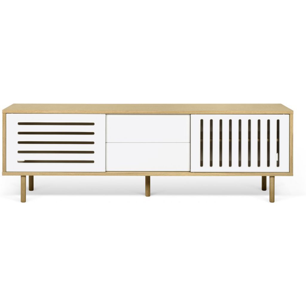 Modern design tendencies has become more and more known for utilizing��different��color tones in furniture pieces to create a striking contrast. The��Pure White Stripes Sideboard from TemaHome is no exception��to this trend.��Warm natural oak veneer cuddles up along side��vibrant white doors to form this sideboards��remarkable aesthetic. With an abundance of storage space and a compact exterior, the Dann Stripes Sideboard��is as functional as it is attractive.��