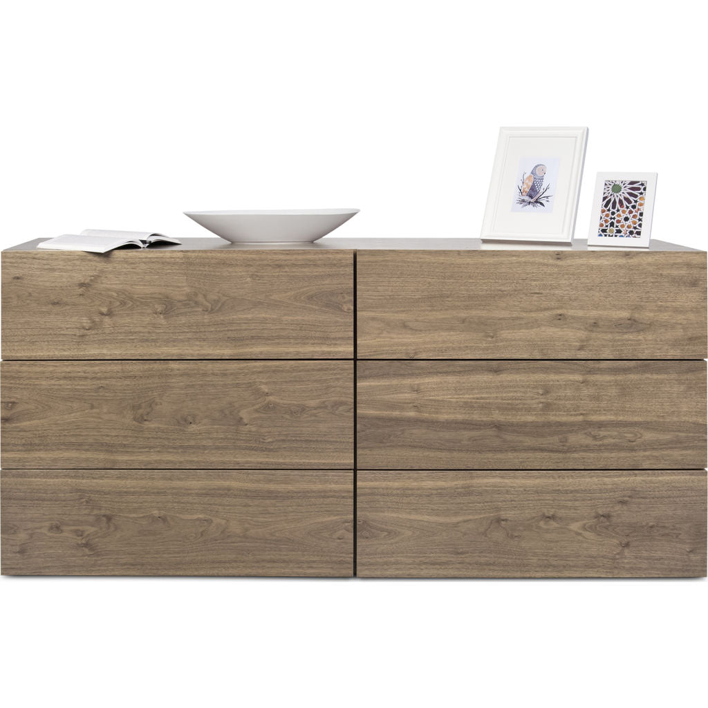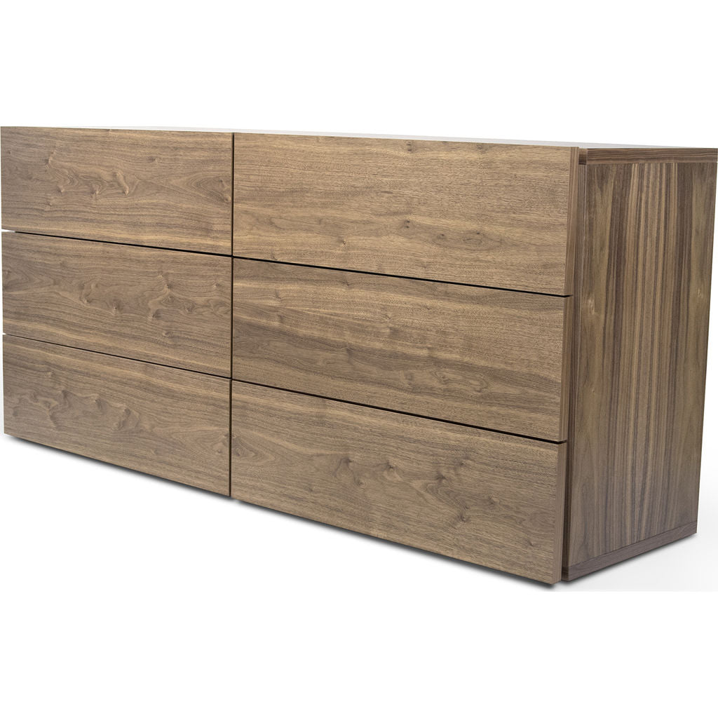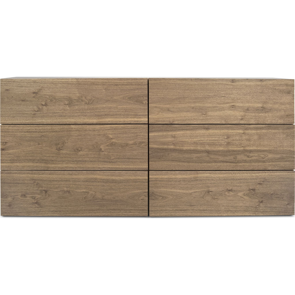 TemaHome's Aurora Collection offers affordable bedroom case goods that boast a��compact��exterior, spacious�� interior and striking aesthetics. Distilled to completely purge away all excess, the form of the Pure White Aurora��Dresser exclusively contains functional components. With��six separate drawers of the same generous volume, the Aurora Dresser has the capacity to help you organize any living space.��