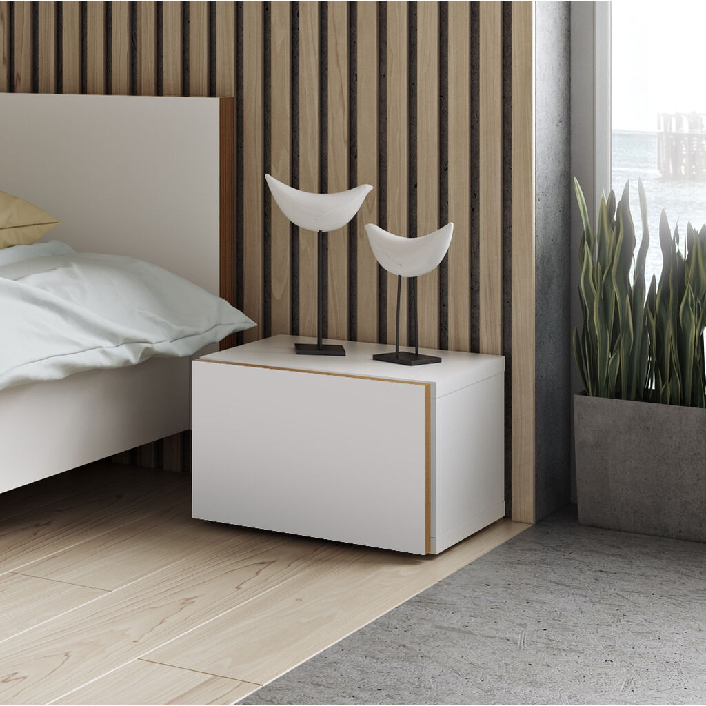 Matching one drawer night stand for the Float bed. TemaHome added to its catalogue a versatile bedside table that follows the minimalist concept of the Float collection. The volume comes with a spacious drawer, an indispensable detail for any space. Small in size, this piece will fit the even the tiniest apartments.